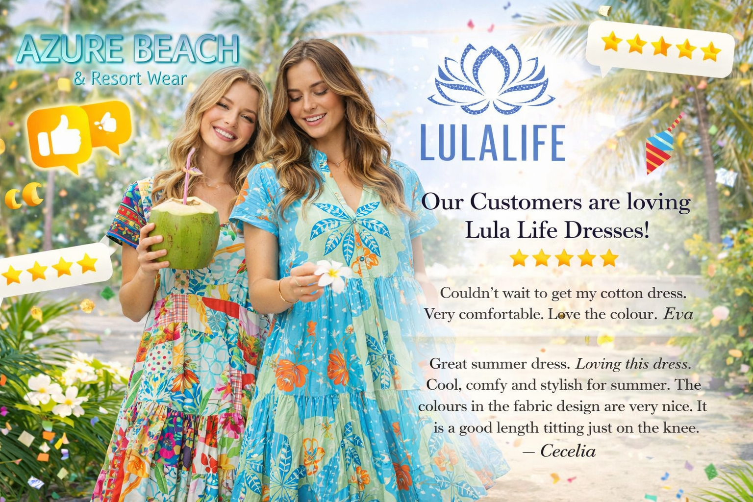 Love this dress , true to size ,lovely material , what a fun print and a fun dress … sure to be a favourite … arrived quickly .. thank you azure Beach , will buy from you again .. Lynne