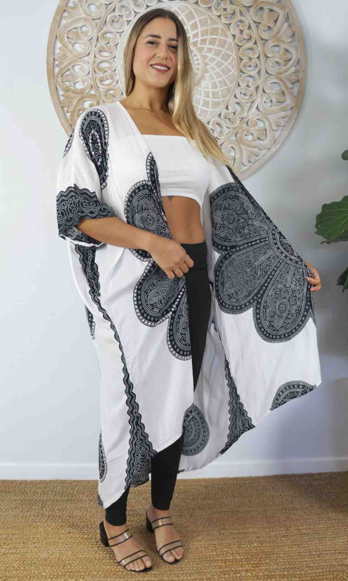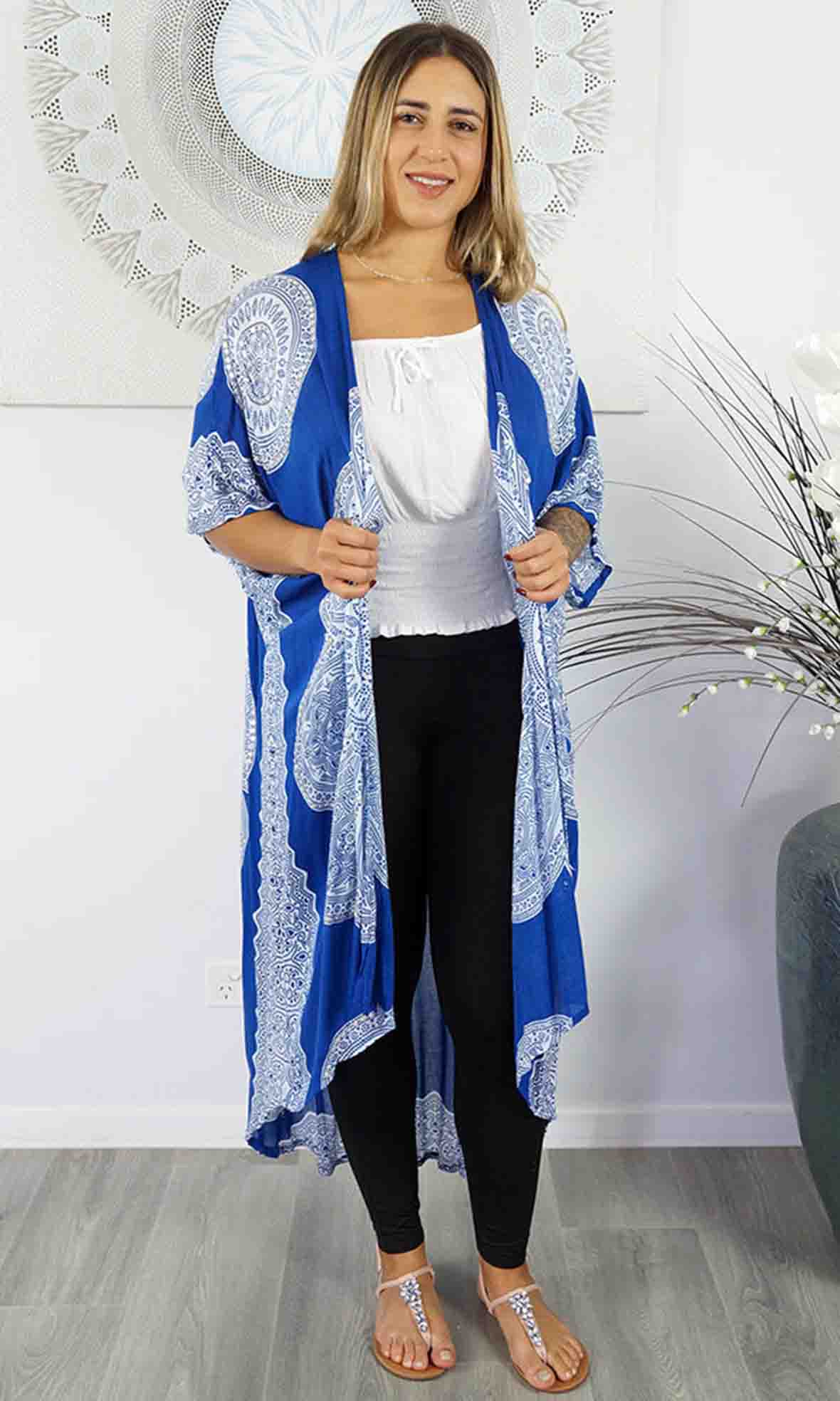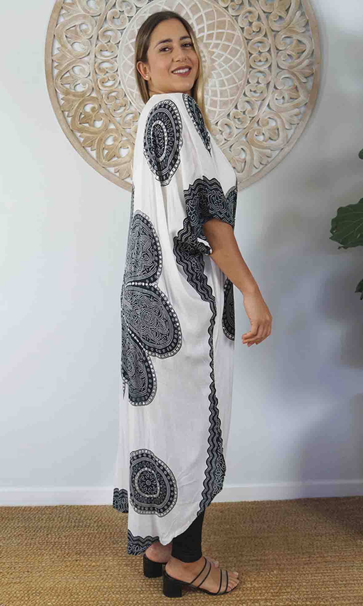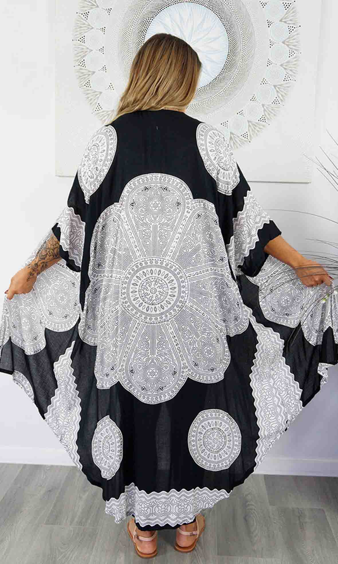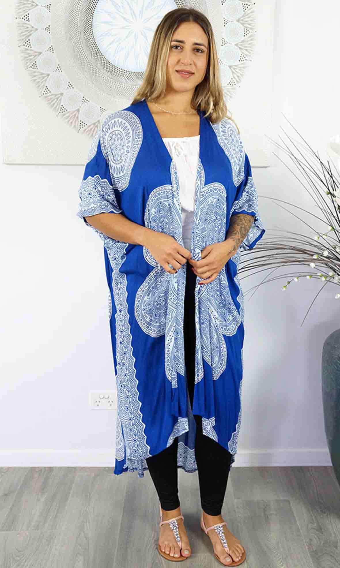 A comfortable way of getting aboutl or on the beach, this all rayon and sequined cape suitable for sizes 10 to 18. Finished length on the back s approximately 120cm, and 90cm on the front.
