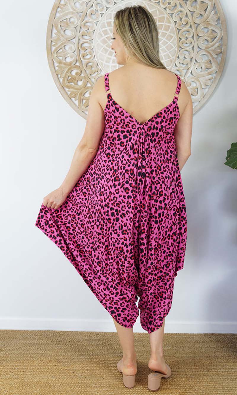 A great piece to add to your summer collection. This clown jumpsuit features adjustable straps V-neck front and back and comfort for those hot summer days.