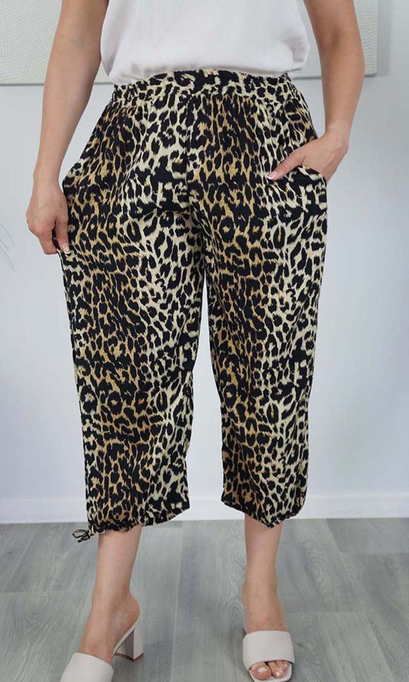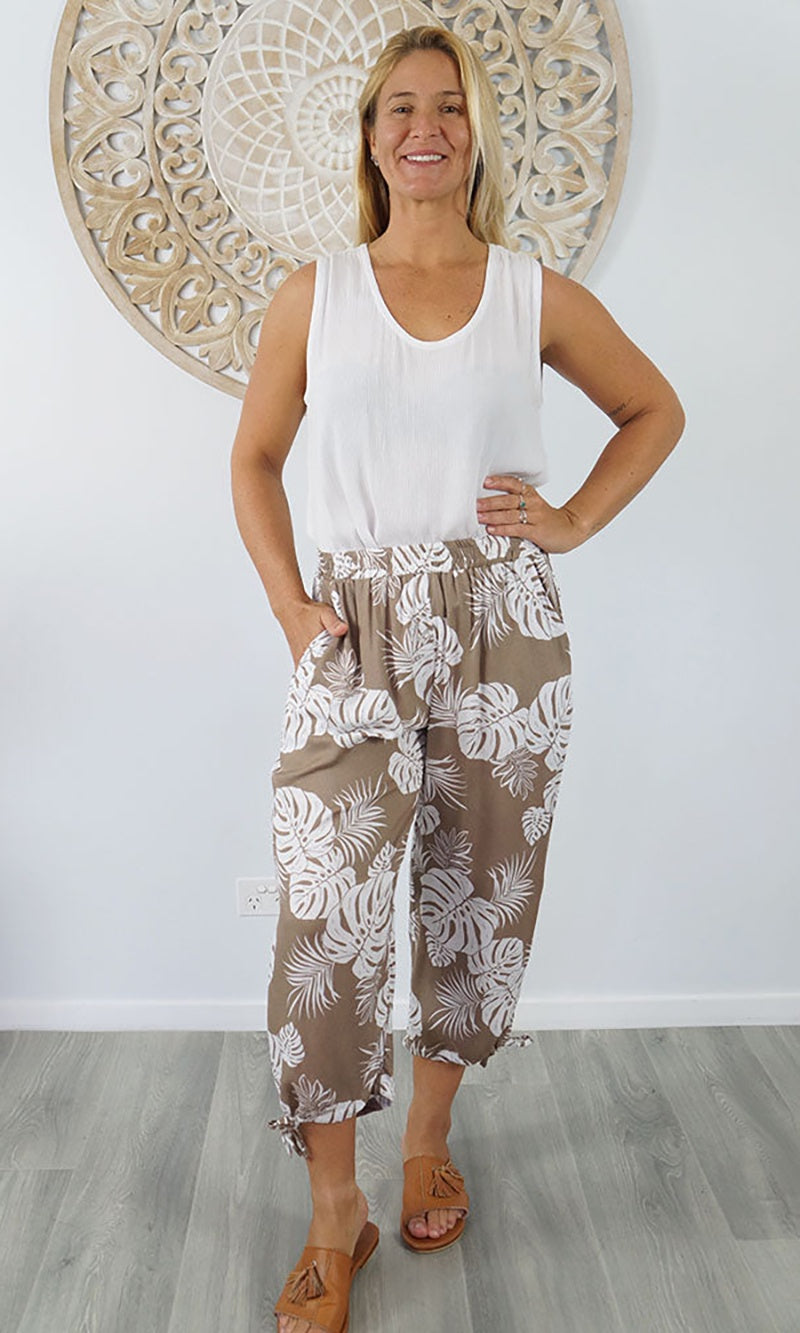 The 3/4 length Castaway pant, made from a comfortable rayon has an elastic waist band and drawstring around the bottom of the leg which makes a great fit.