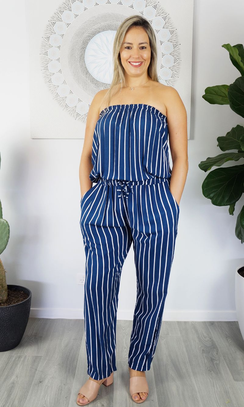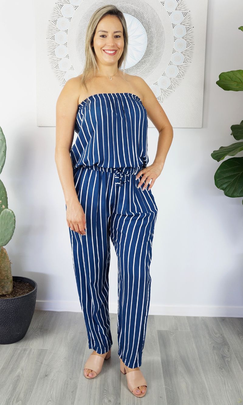 Rayon Jumpsuit Long Bandeau New Stripes, More Colours