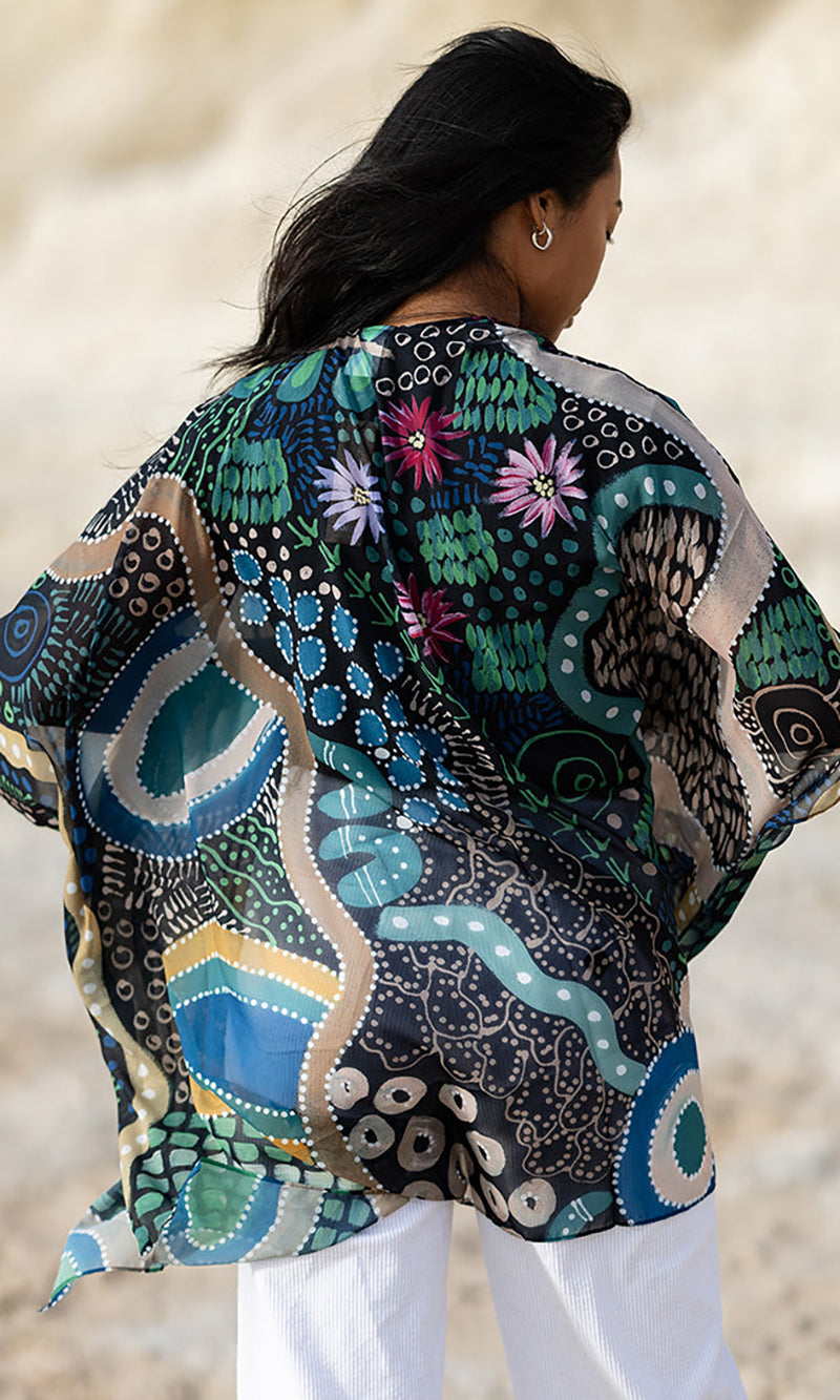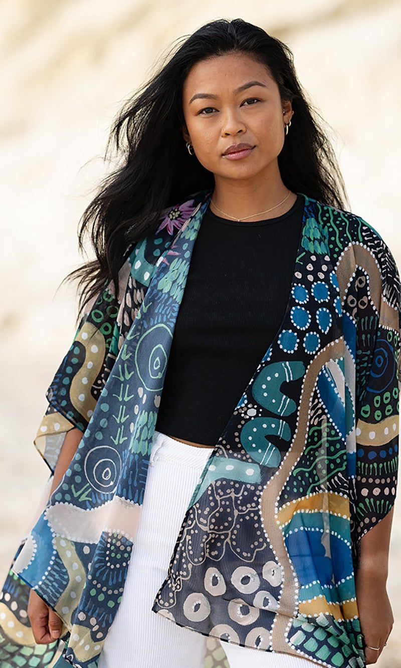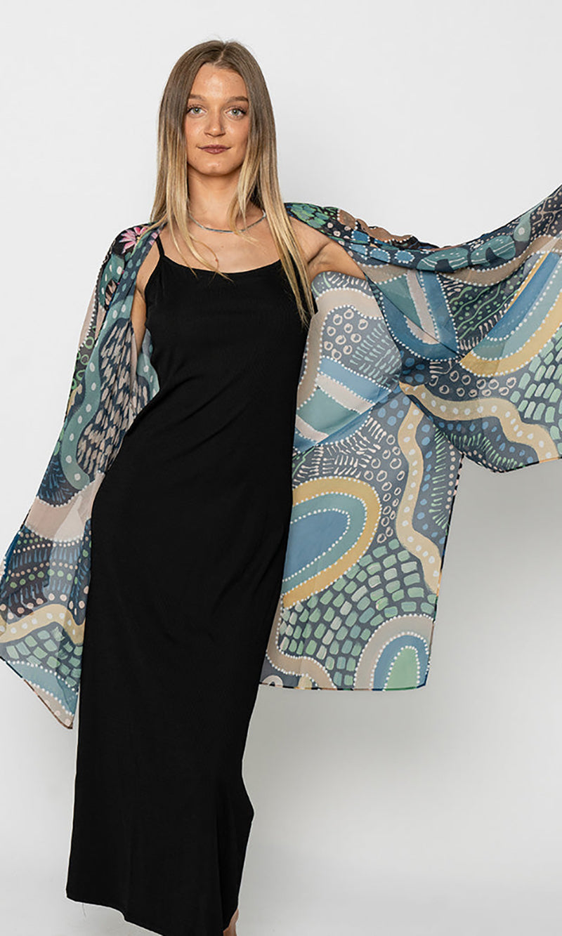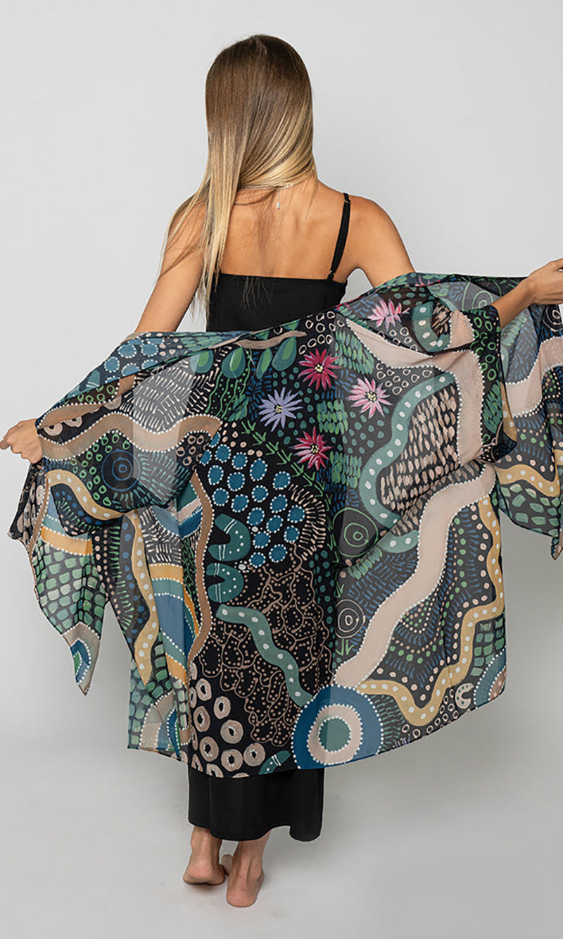 Featuring vibrant artwork from Caitlyn Davies-Plummer (Dustin-Koa Art), these shawls drape beautifully and add colour to your outfit without heaviness or bulk. Her latest release features a host of Home-inspired designs that reflect the soothing and uplifting role of art in her life, of 'feeling like home'.