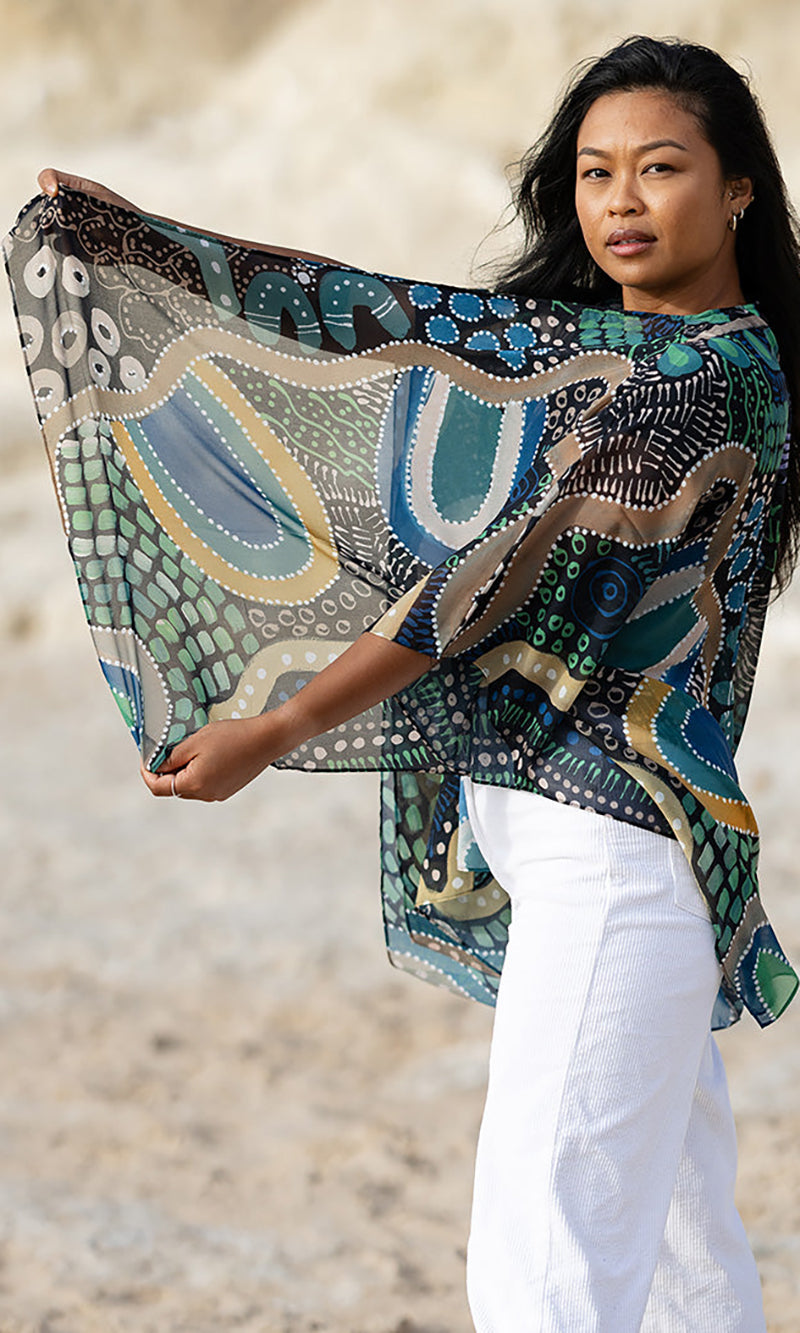 Aboriginal Art Chiffon Shawl By The Waterhole
