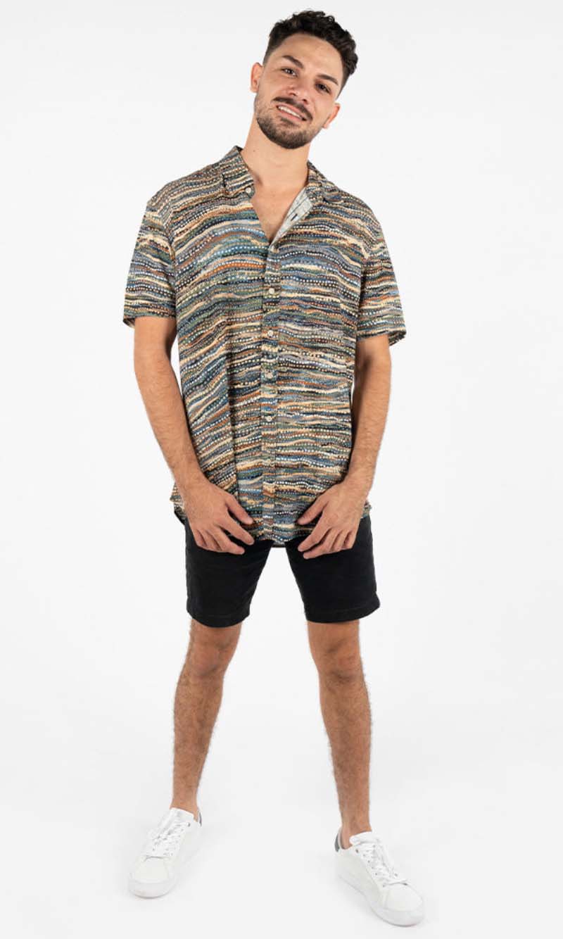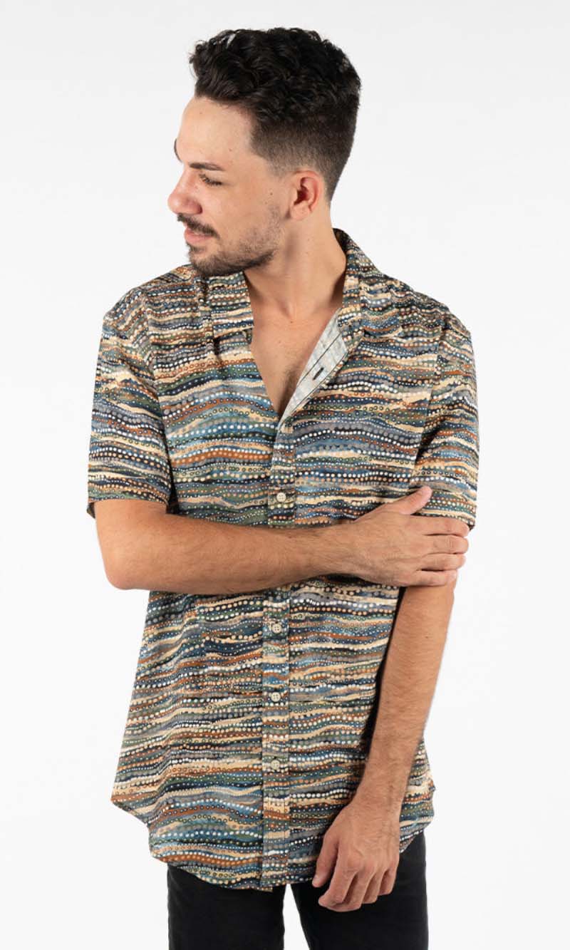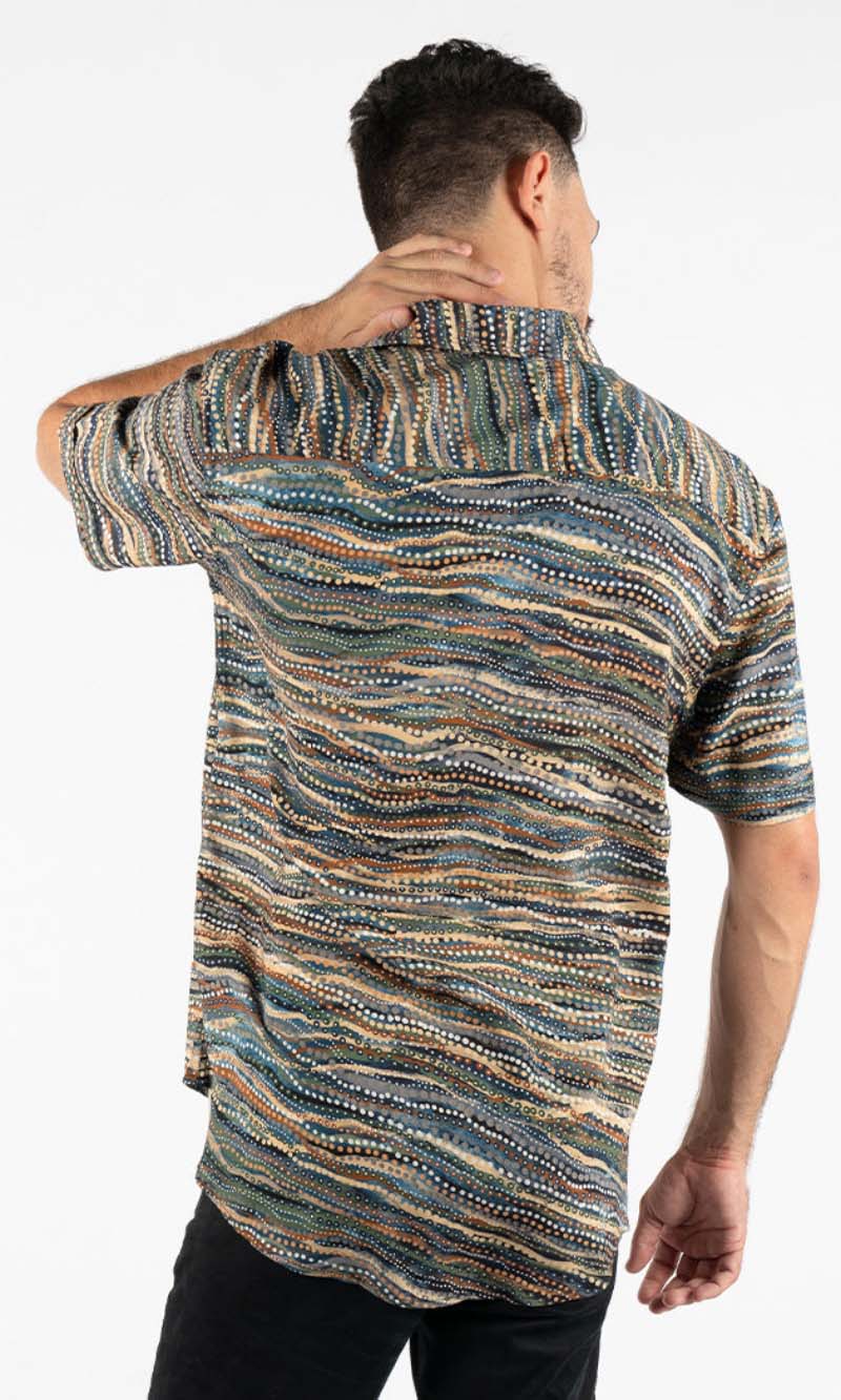 Aboriginal Art Men's Button Up Shirt Nguram-bal-bang (Very Deep)