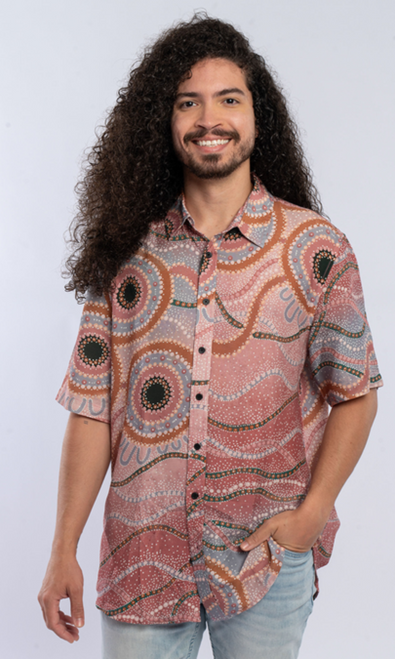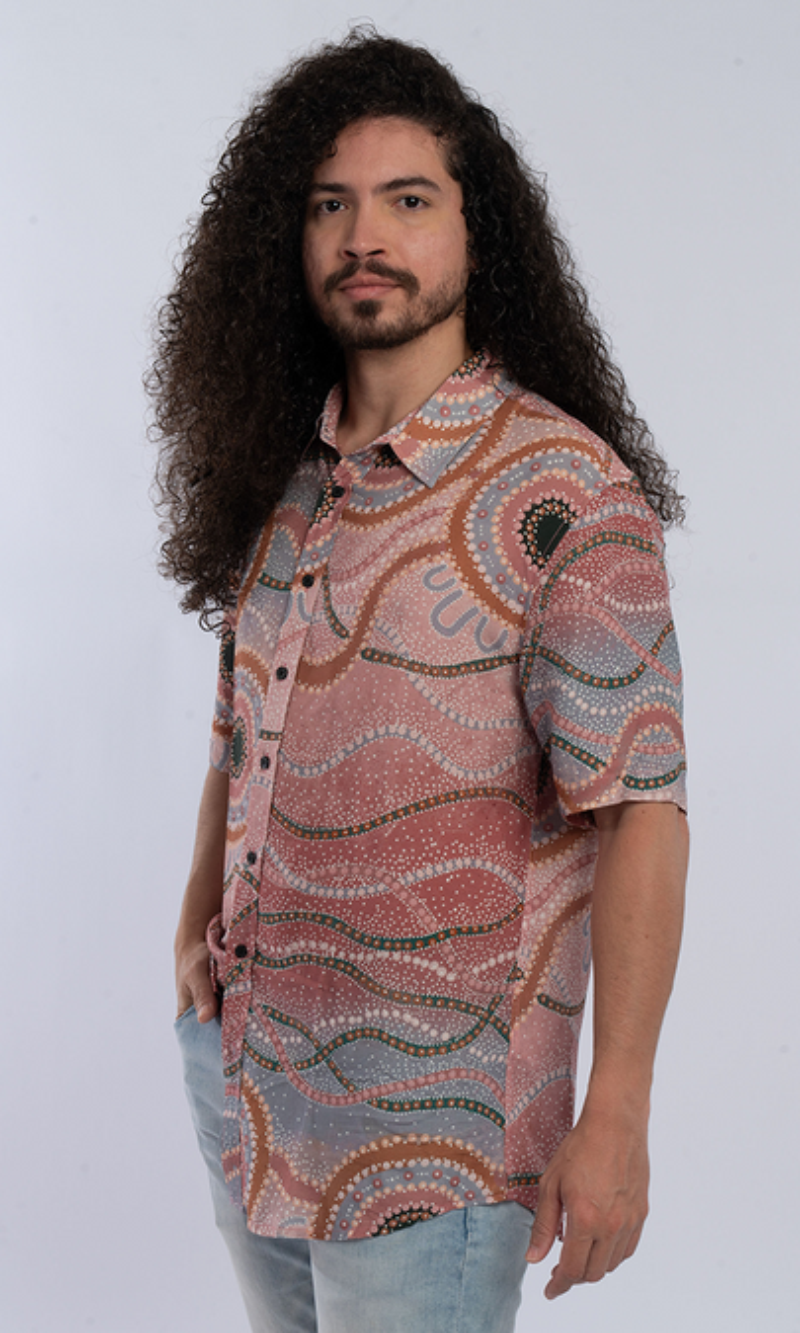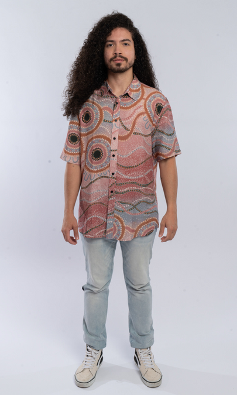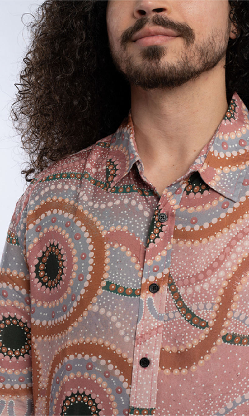 Aboriginal Art Men's Button Up Wawirra Bunan