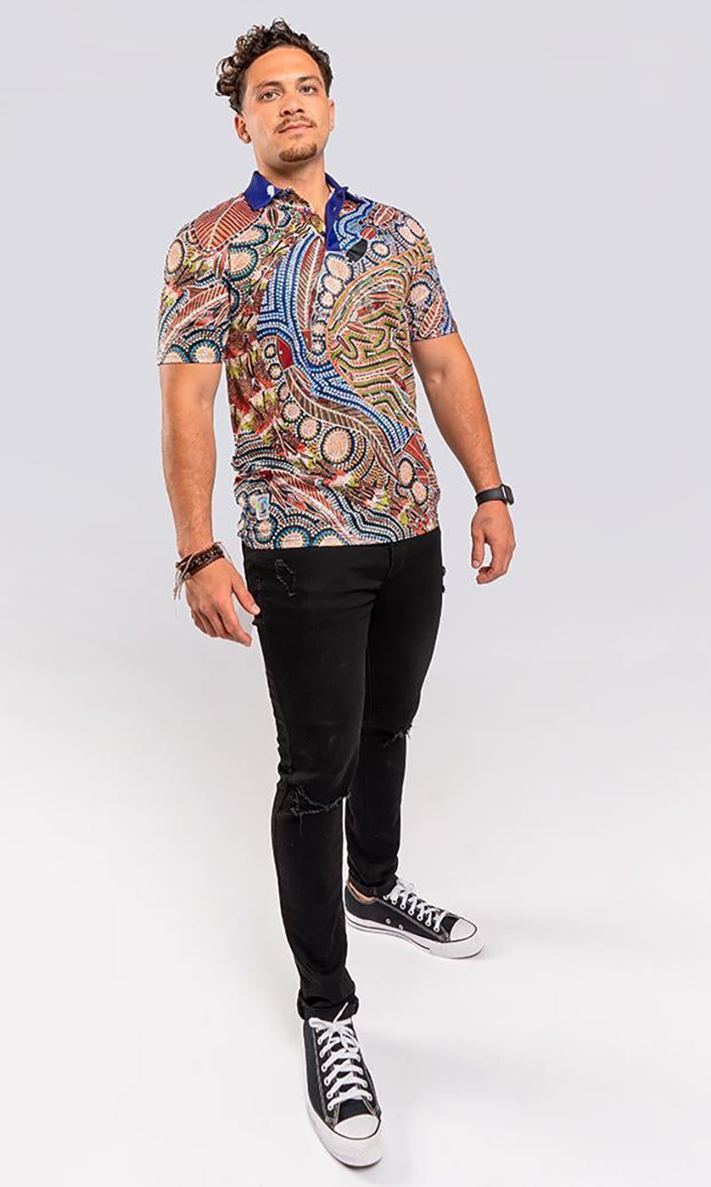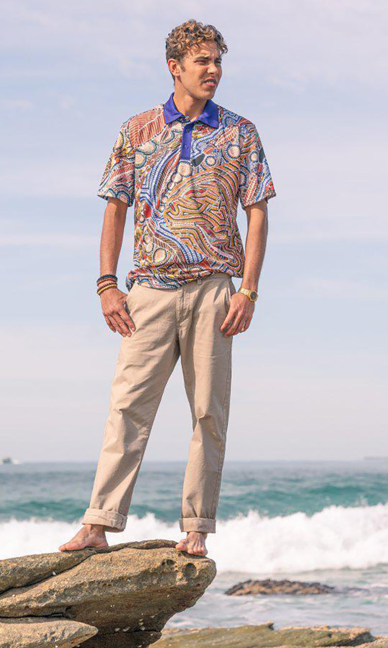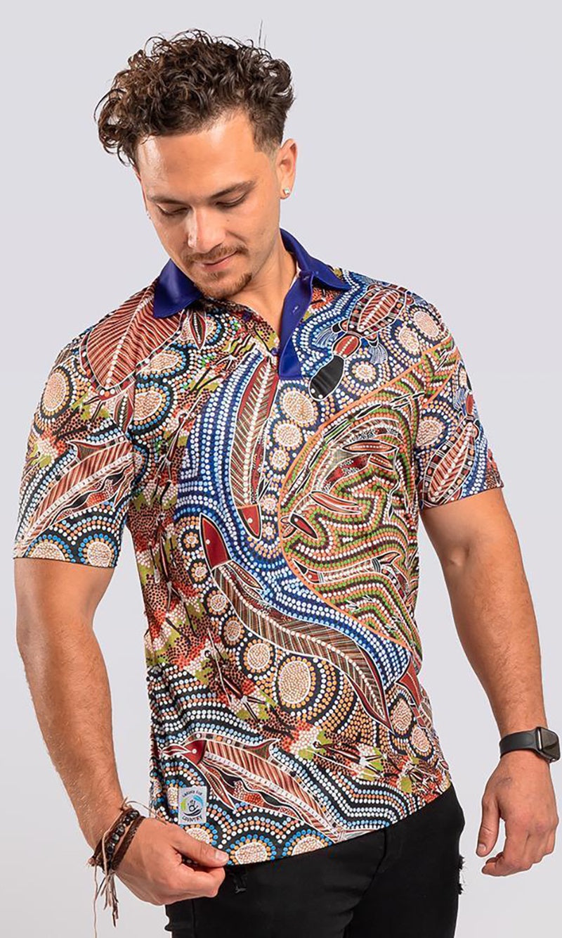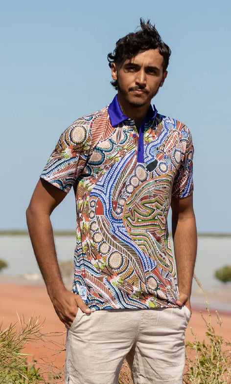 Aboriginal Art Unisex Polo Healing Land, Rivers, Sea & Ocean”