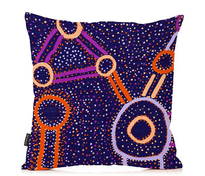 Australian Made Cotton Cushion Cover featuring licensed artwork by Watson Robertson from Warlukurlangu Artists in the Northern Territory, Australia.