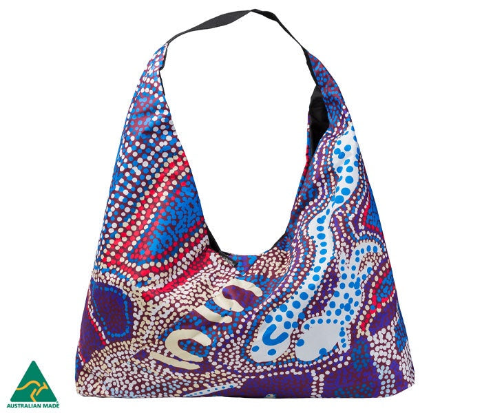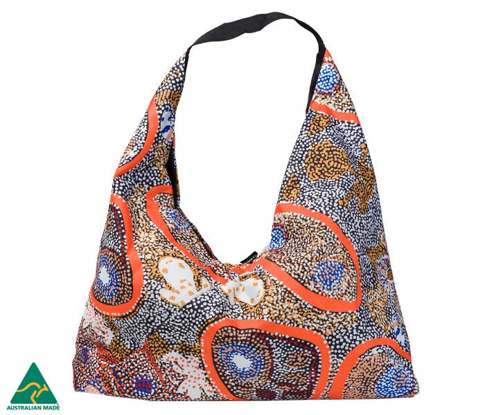 Head out in style with one of these great Australian made origami totes featuring artwork by Nora Davidson from Papulankutja Artists.