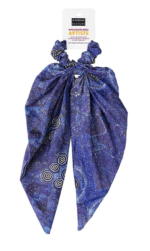 Cotton Hair scrunchies featuring artwork from Warlukurlangu Artists.