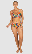 The Biarritz D/DD/E Underwire Bikini Bra Top features hidden underwire and side boning for structured bust support. It includes soft removable cups, supportive inner Lycra cup lining, a secure clip back, and adjustable, convertible straps for a customised fit.