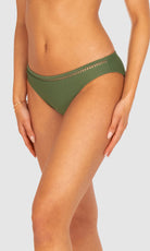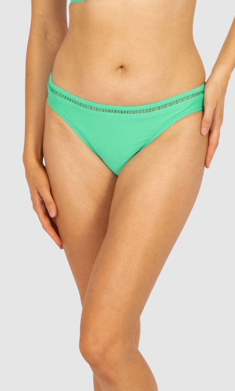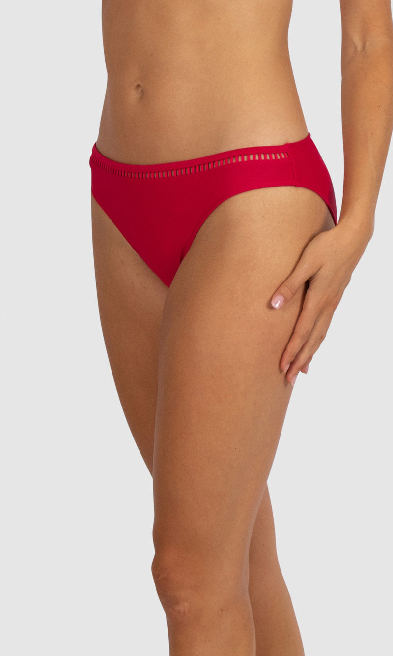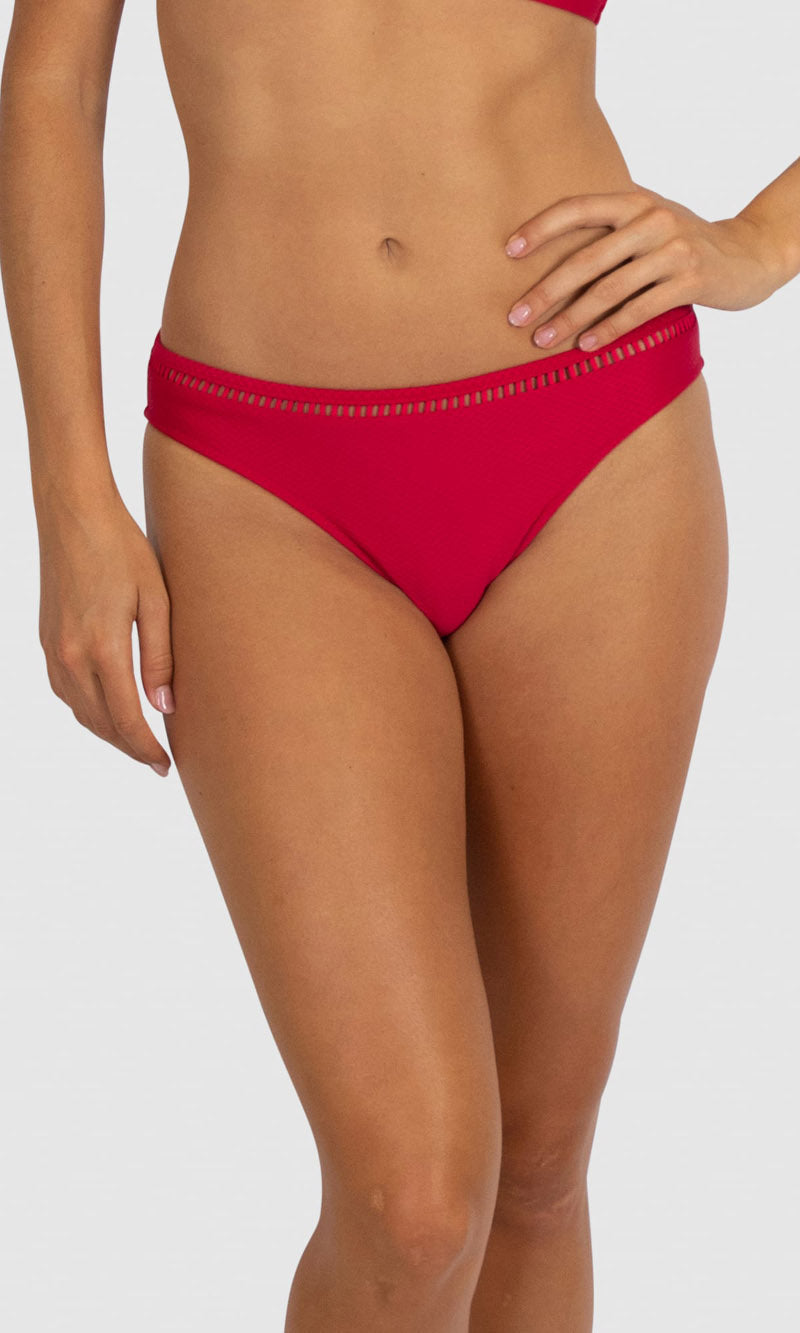 Baku's Rococco Regular Bikini Bottom features a regular coverage bottom with ladder lace detailing. Rococco is a luxury textural fabrication from Spain that is buttery soft, yet sophisticated and structured.