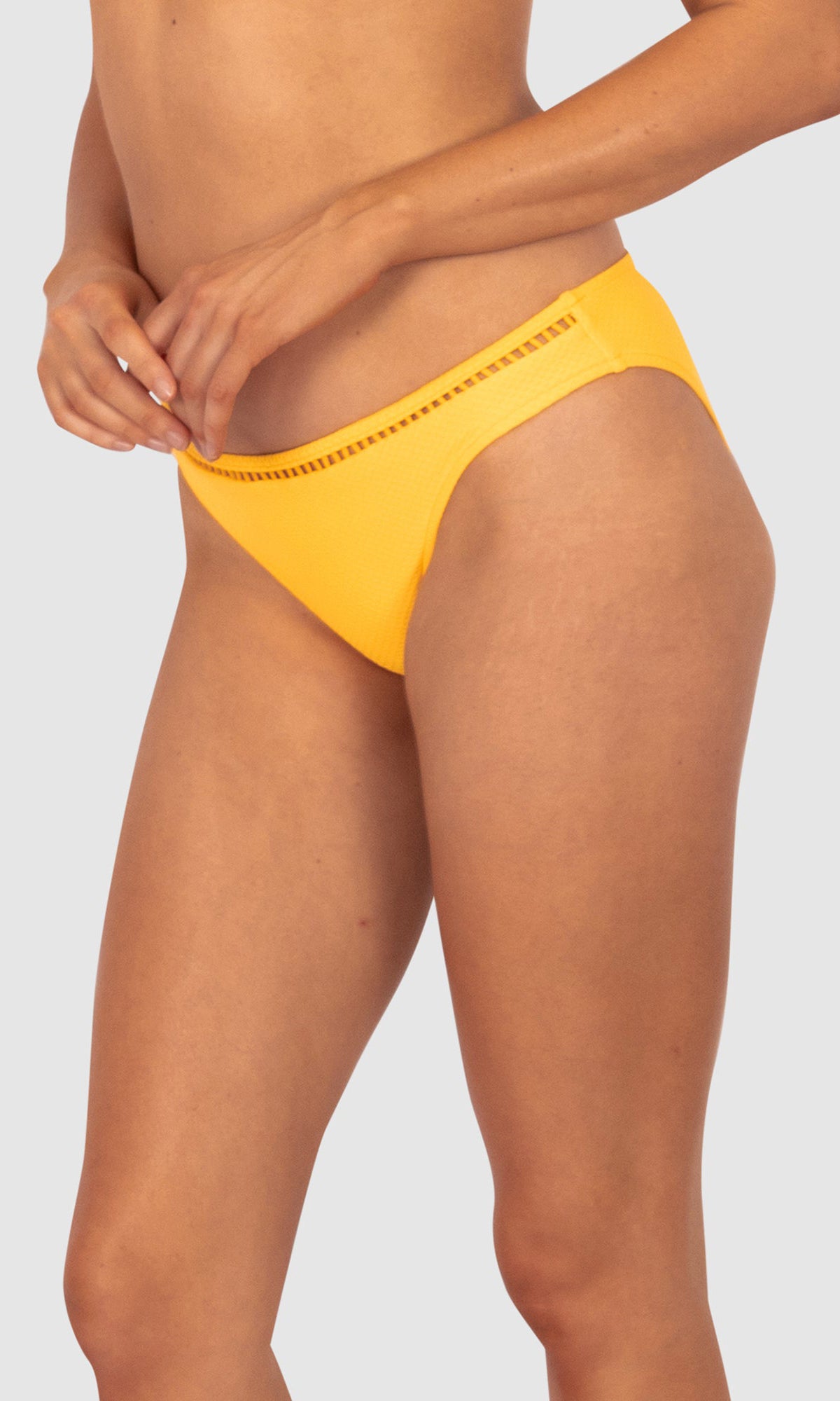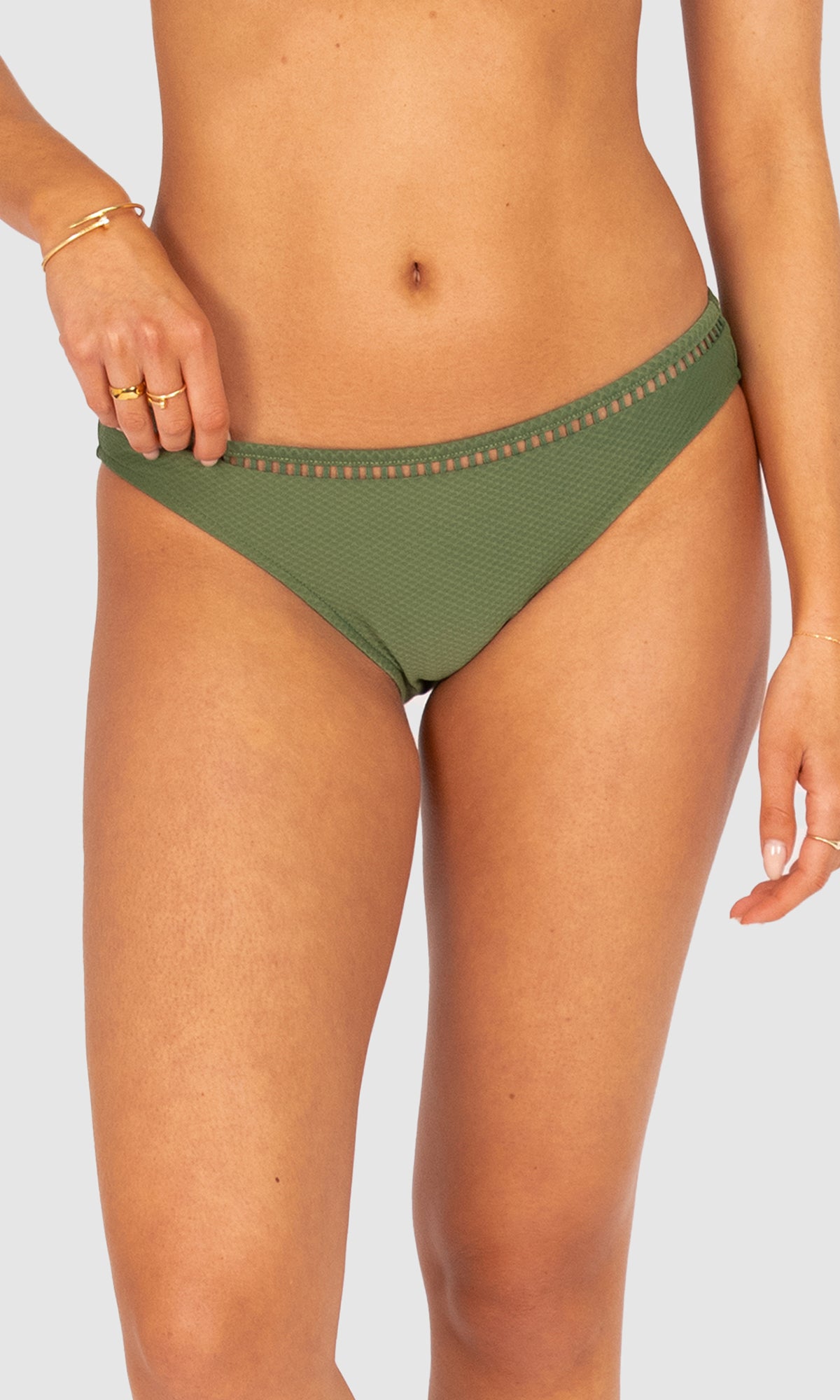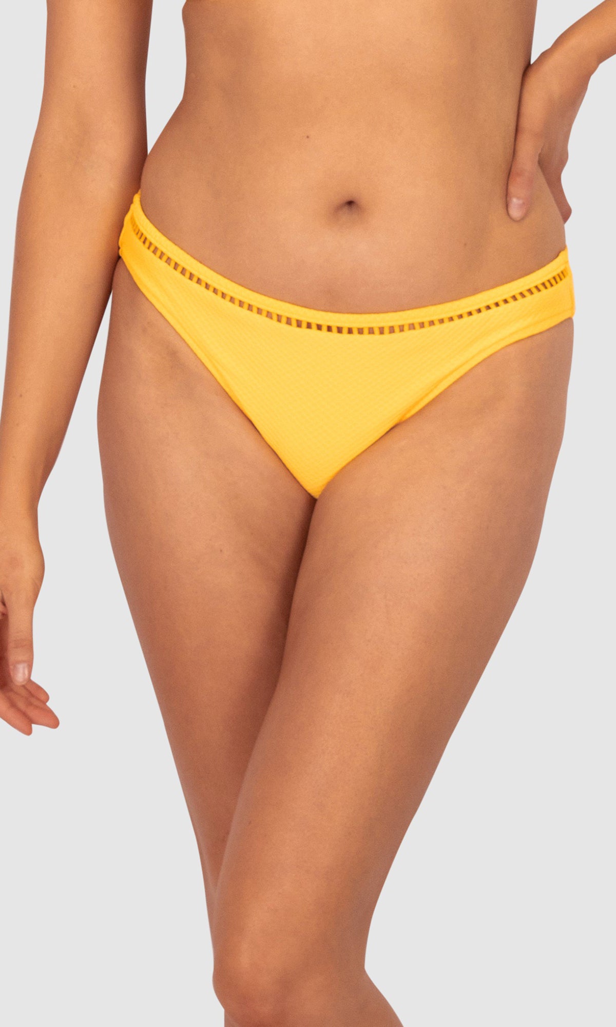 Baku's Rococco Regular Bikini Bottom features a regular coverage bottom with ladder lace detailing. Rococco is a luxury textural fabrication from Spain that is buttery soft, yet sophisticated and structured.