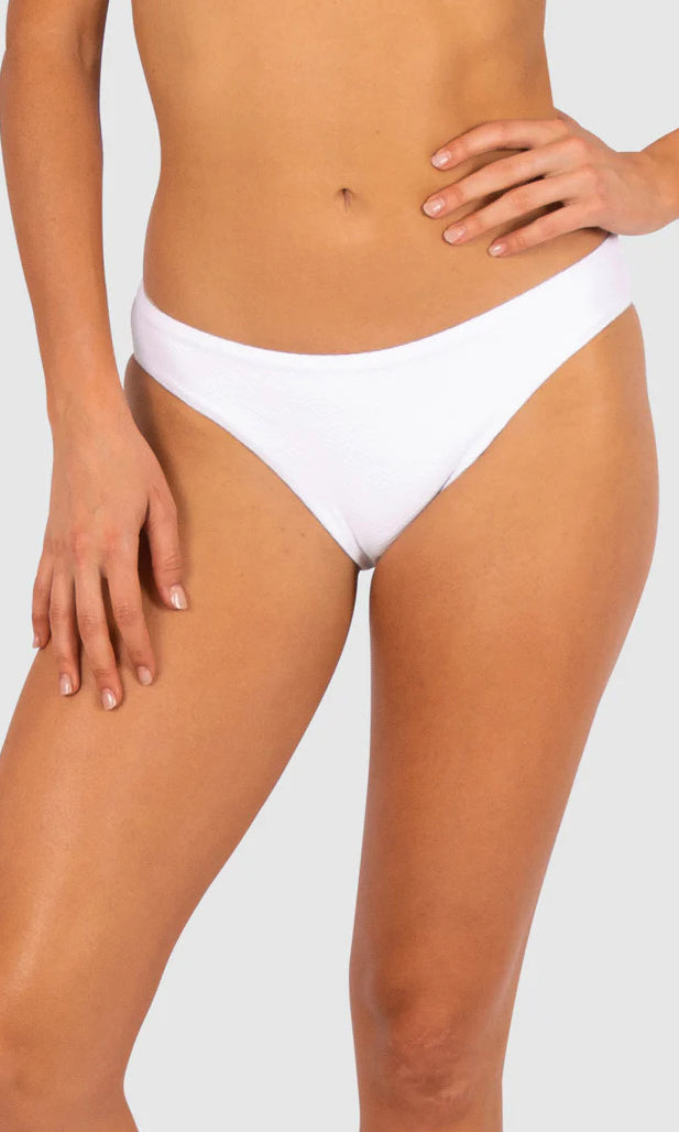 Baku's Rococco Regular Bikini Pant features a regular fit, with a soft edge front. It has a full coverage bottom. Rococco is a luxury textural fabrication from Spain that is buttery soft, yet sophisticated and structured.