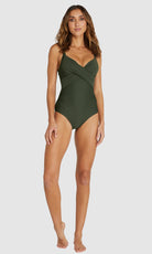 Featuring molded underwire cups and removable booster pads, it offers multi-cup fits for personalized shaping. With a convenient clip back and adjustable, convertible straps, this one-piece ensures a comfortable and customizable beachside experience.