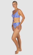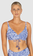 Experience elevated comfort and style in the Havana D/E Underwire Top, featuring a discreet hidden underwire, flattering ruched front detail, clip back for security, side boning for added support, and Lycra cup support for a tailored fit.