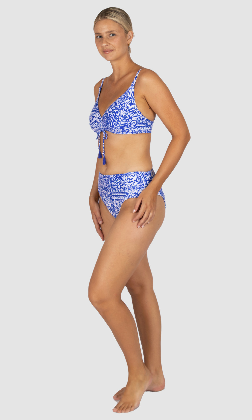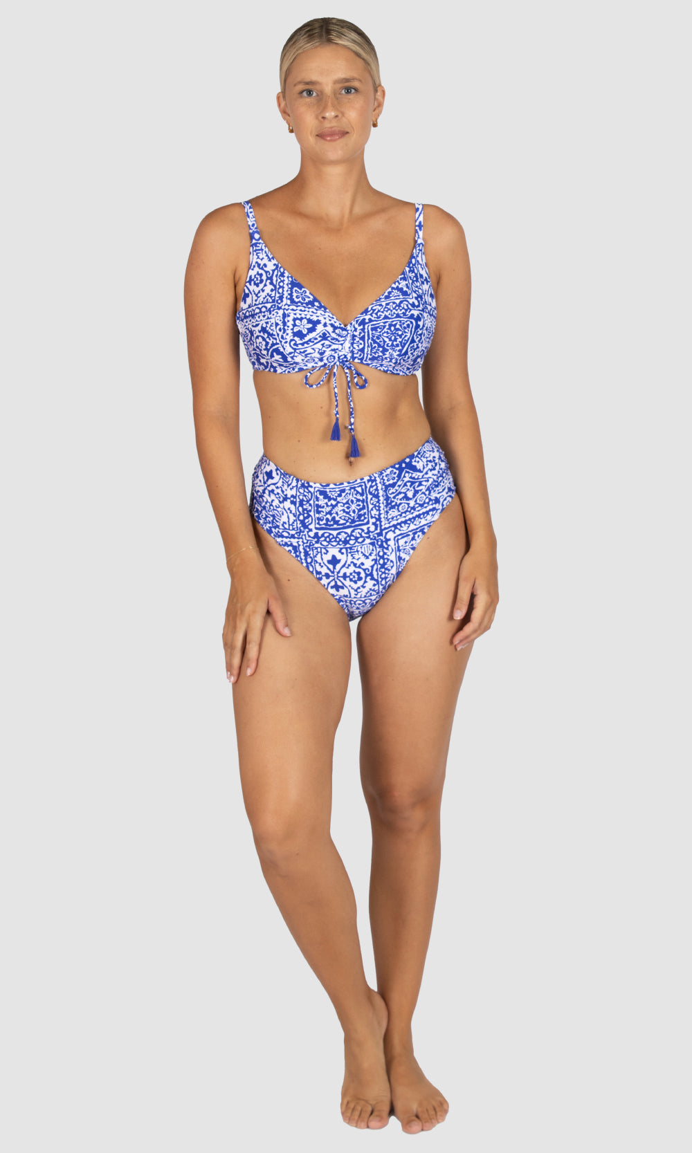 Step into the vibrant charm of Cuba with Havana, an intricate swimwear print that weaves together the artistry of tiles, mosaics, and tropical patterns.