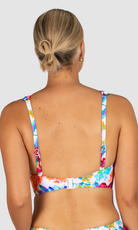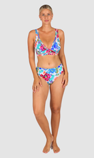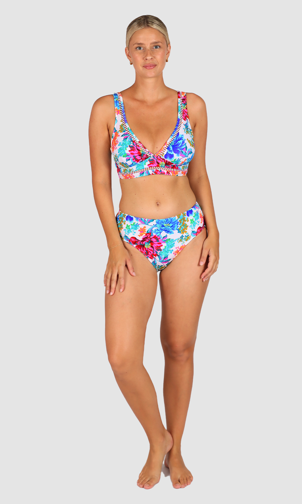 Baku's Le Jardin D-DD Longline Bikini Bra features a flattering dropped neckline highlighted with ladder lace detailing around the neck and under the bust. It also features removable cups, lycra cup support and boning support. It has adjustable and convertible straps and fastens with a clip back.