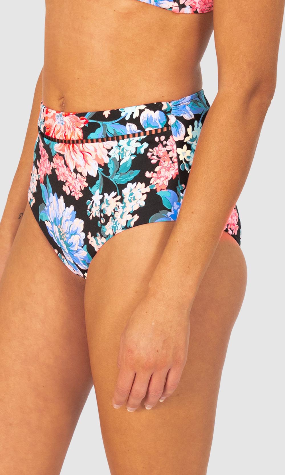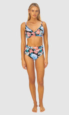 Baku's Le Jadin High Waist Bikini Bottom features ladder lace detailing, a high waist with tummy control and a full regular coverage bottom.