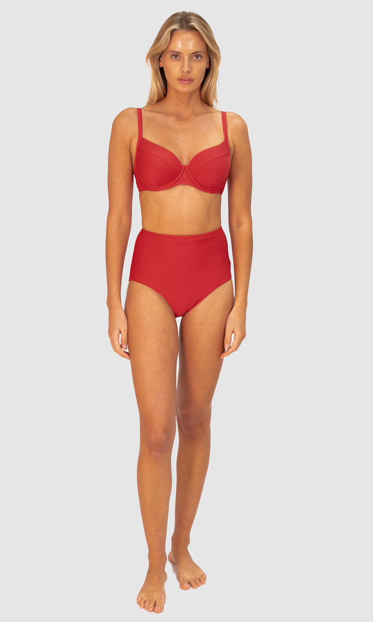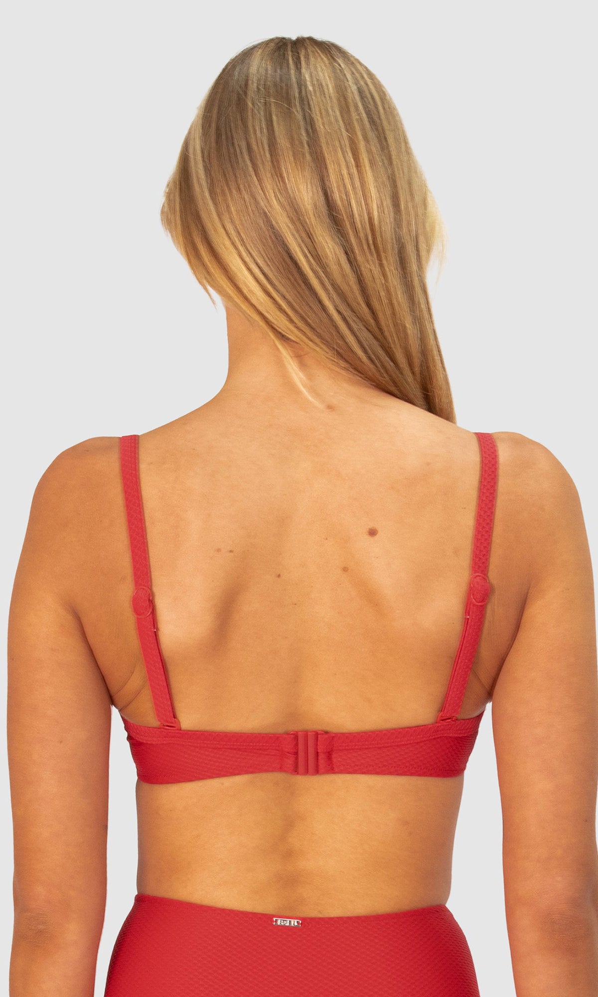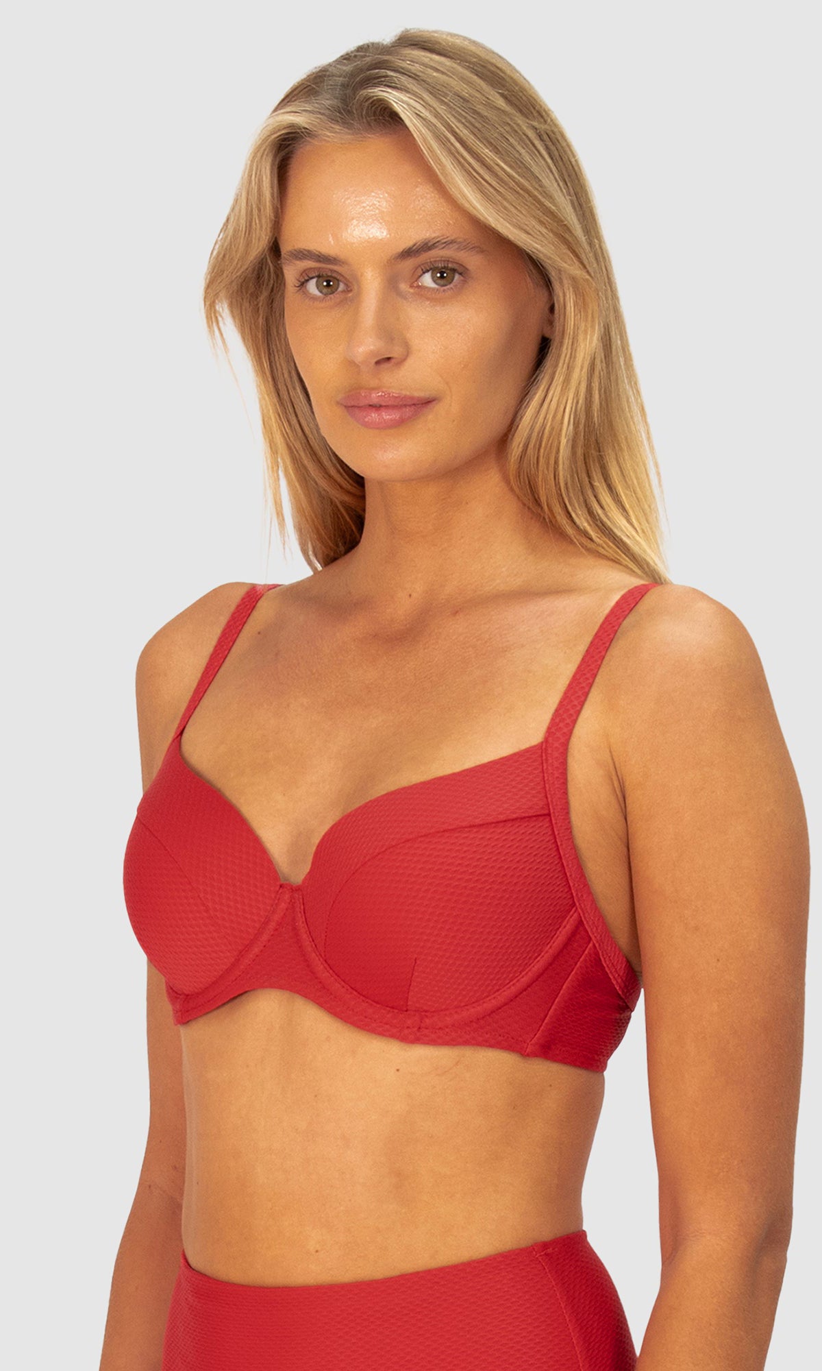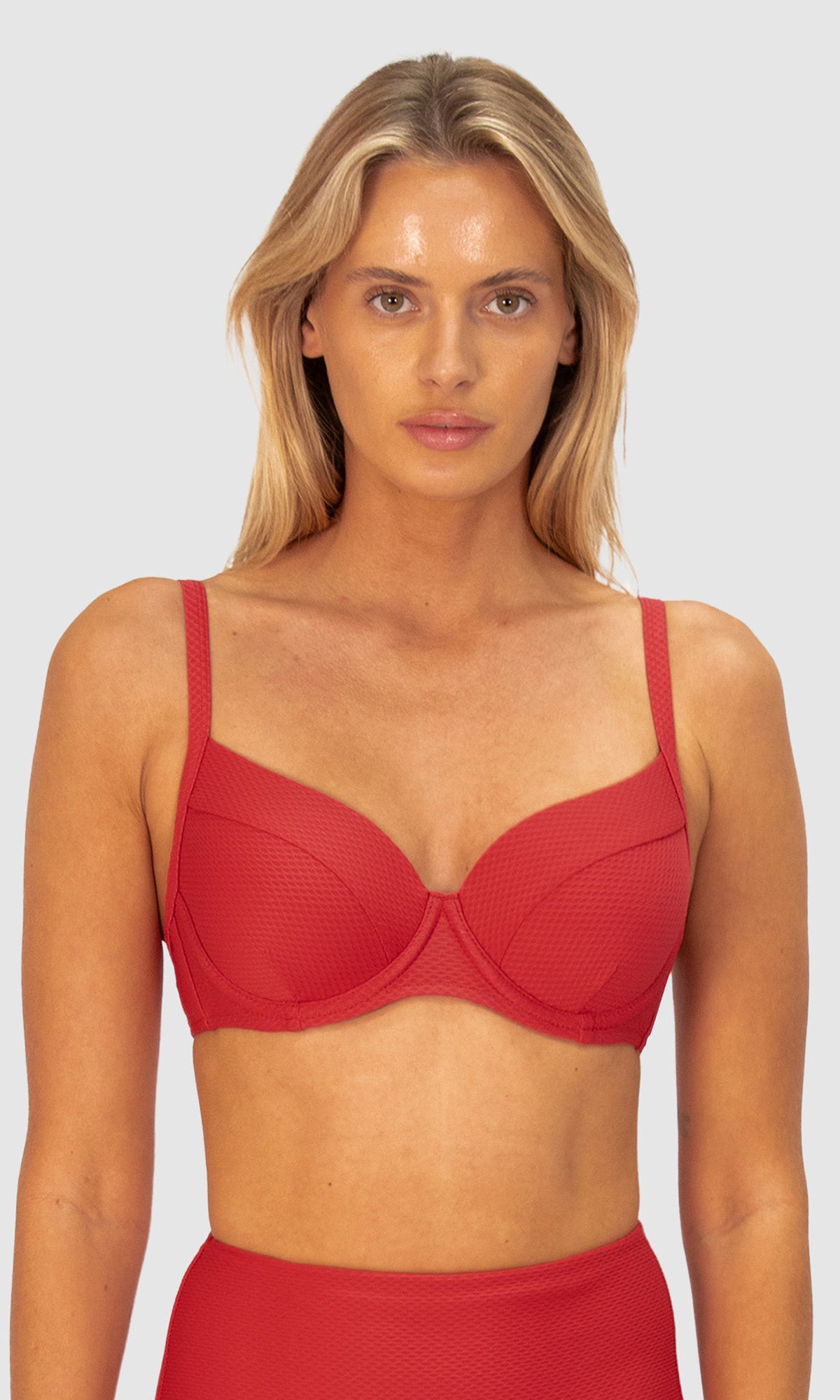 Baku's Rococco D-DD Moulded Bra Bikini Top features moulded underwire cups, boning support, adjustable and convertible straps and fastens with a clip back. Rococco is a luxury textural fabrication from Spain that is buttery soft, yet sophisticated and structure.
