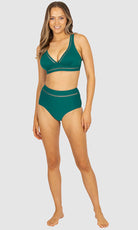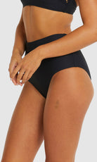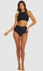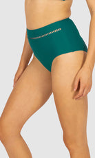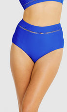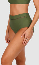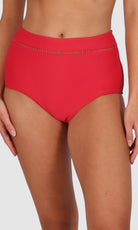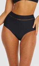 Baku's Rococco Lace High Waist Bikini Pant features a flattering high waist with ladder lace detailing, tummy control and offers a full coverage bottom. Rococco is a luxury textural fabrication from Spain that is buttery soft, yet sophisticated and structured.