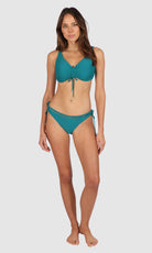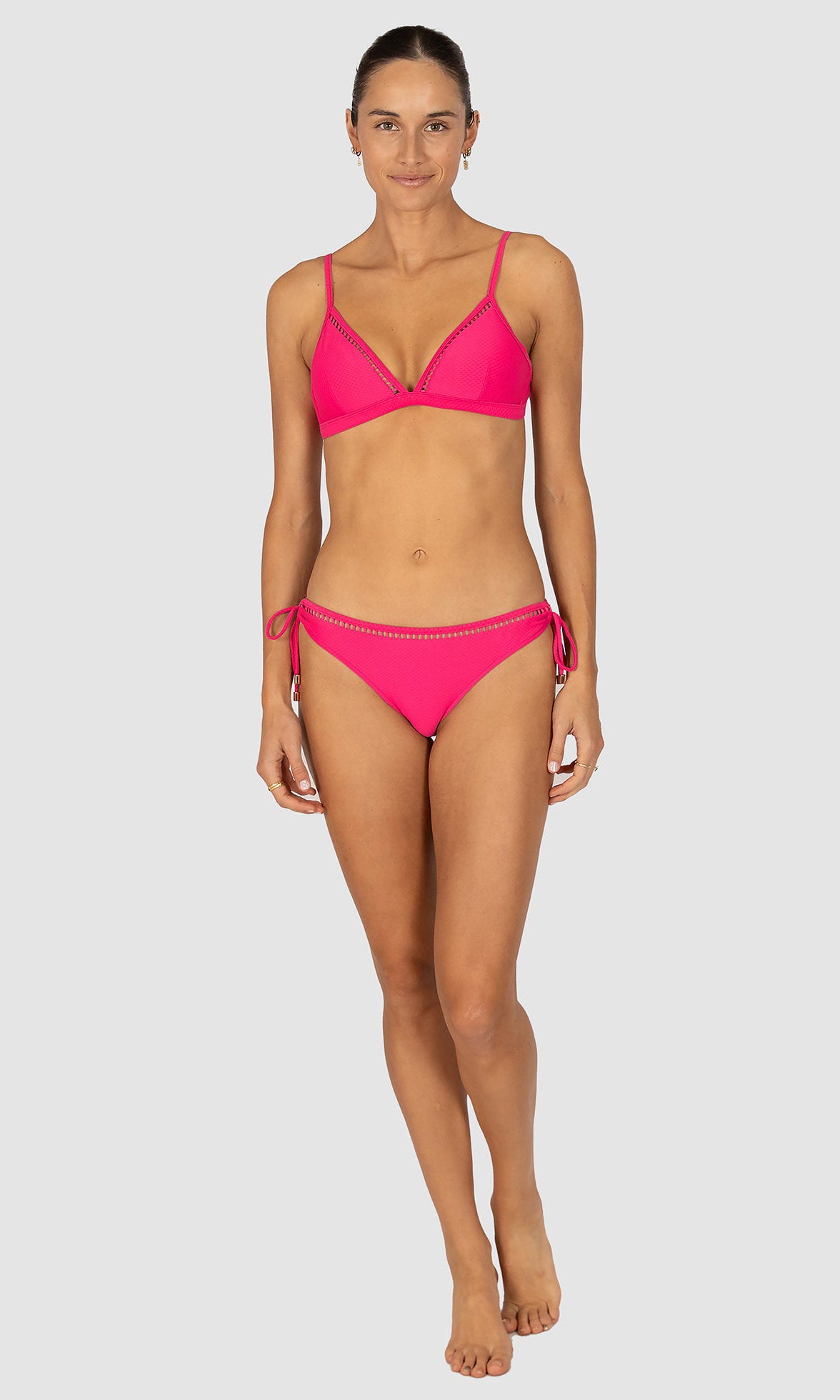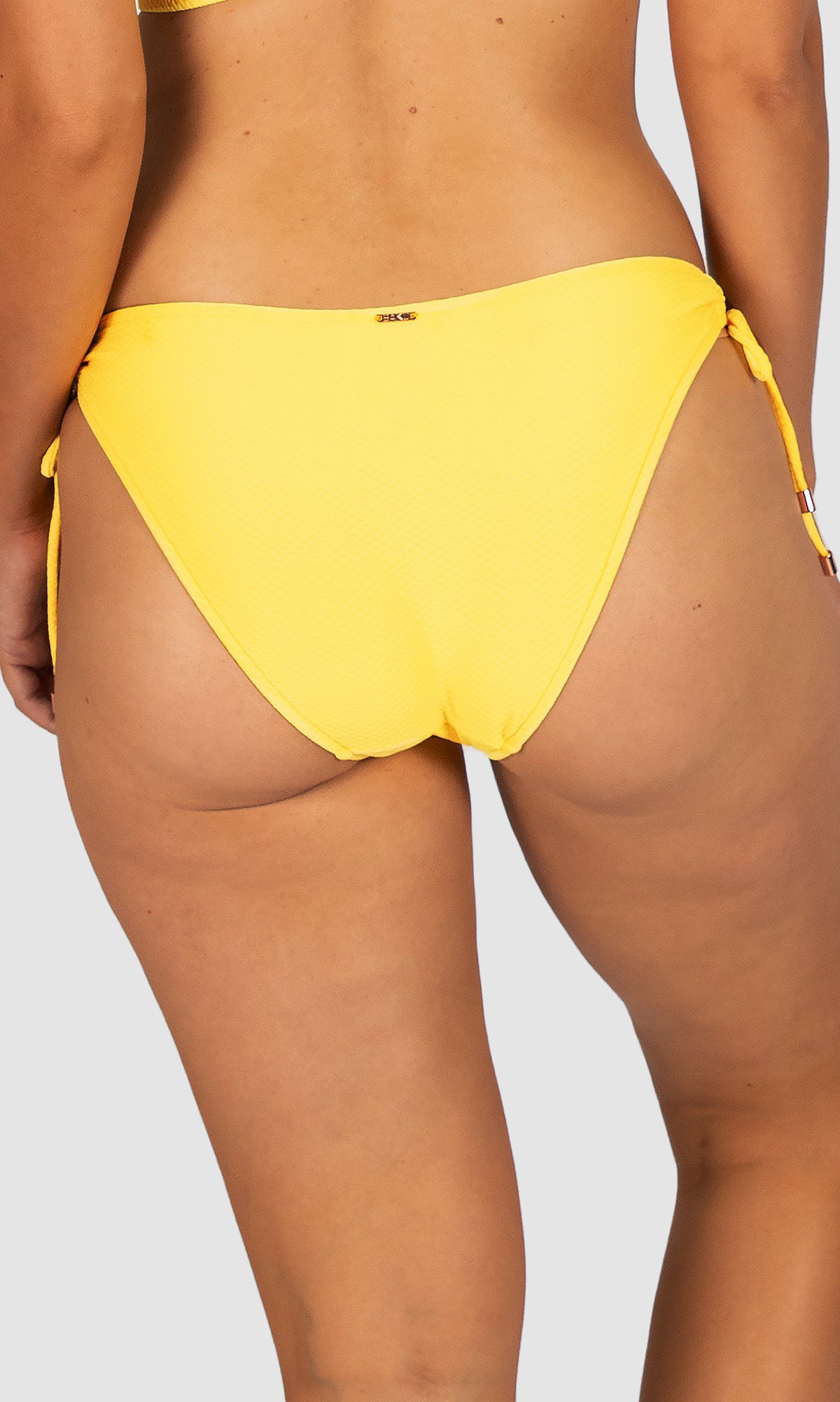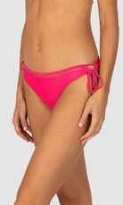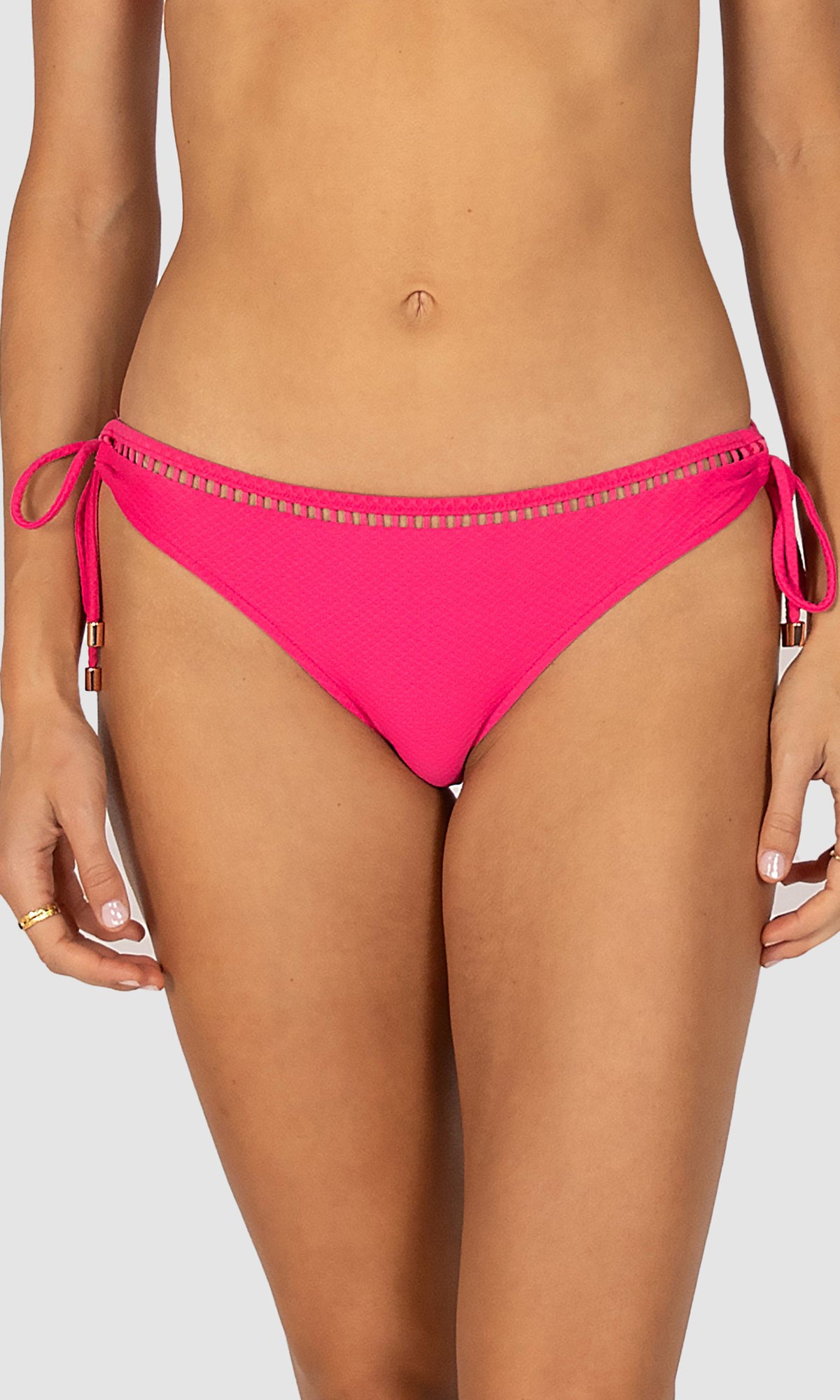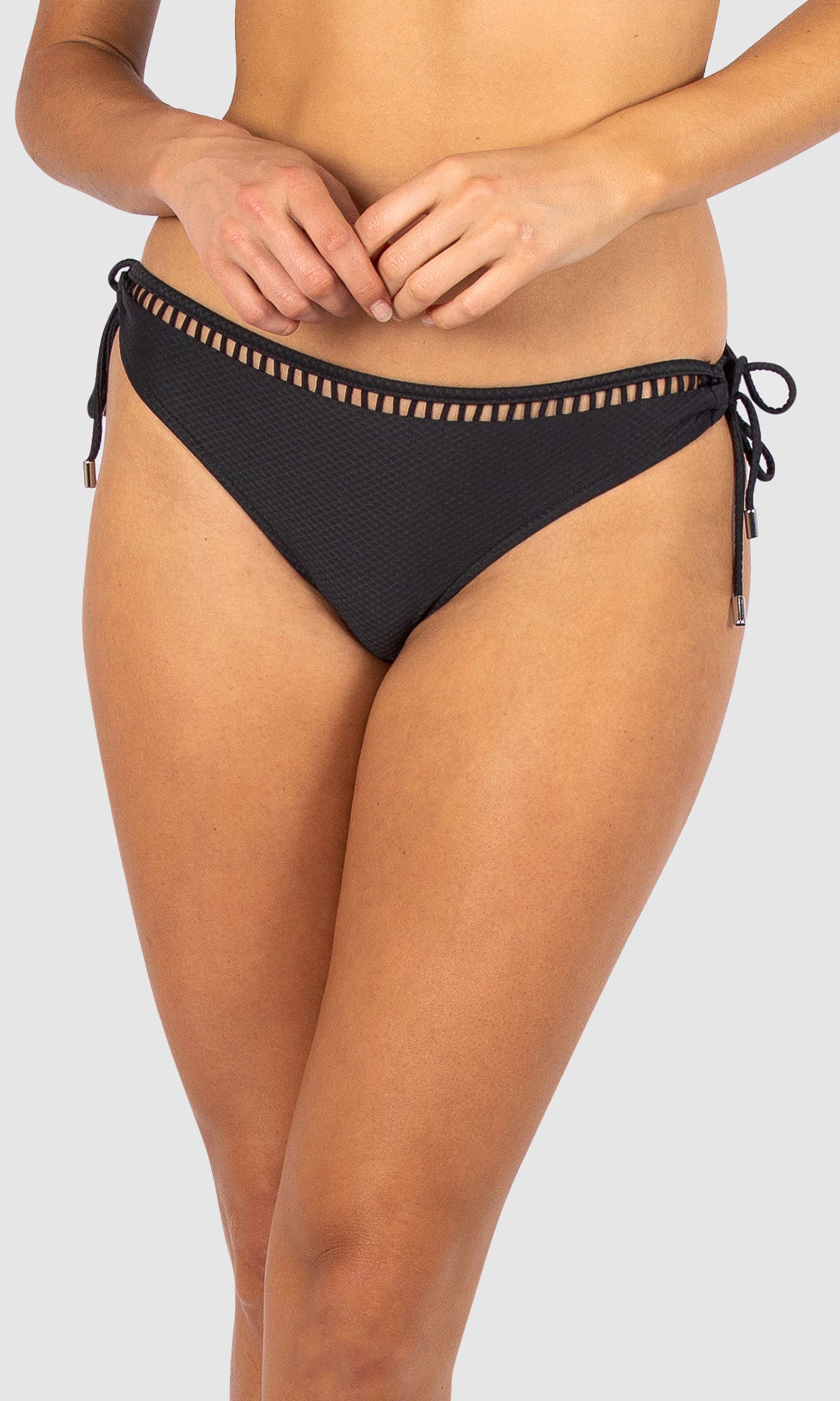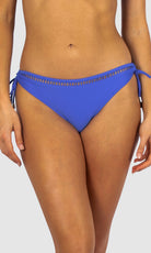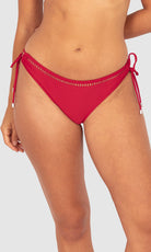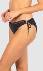 Baku's Rococco Tie Side Hipster Bikini Bottom features adjustable tie sides and ladder lace detailing. It has a hipster coverage bottom.