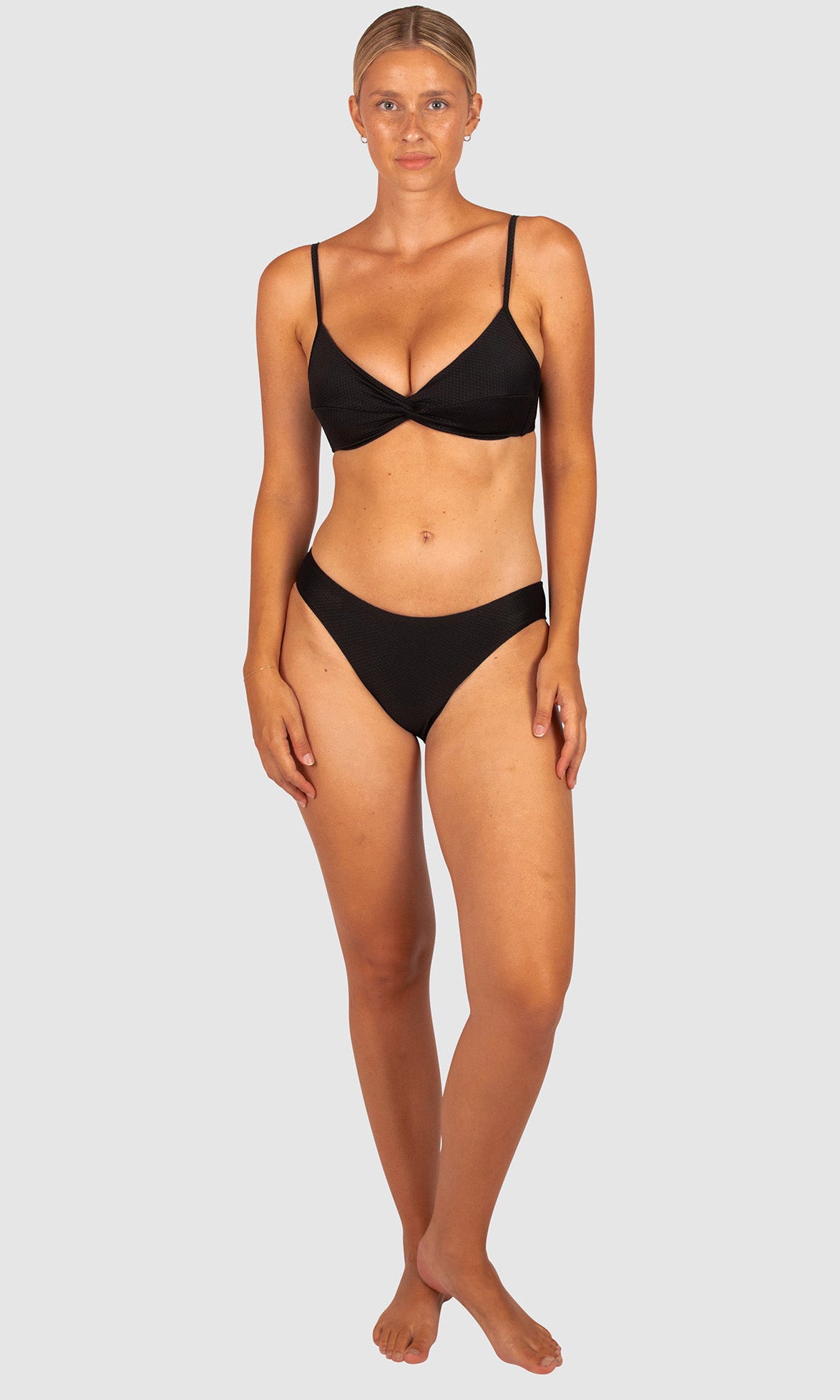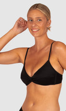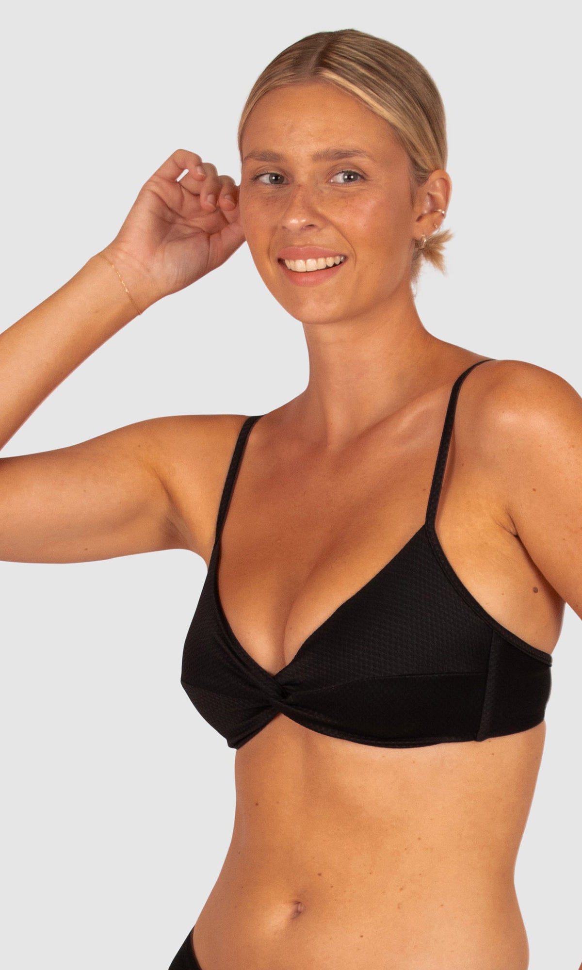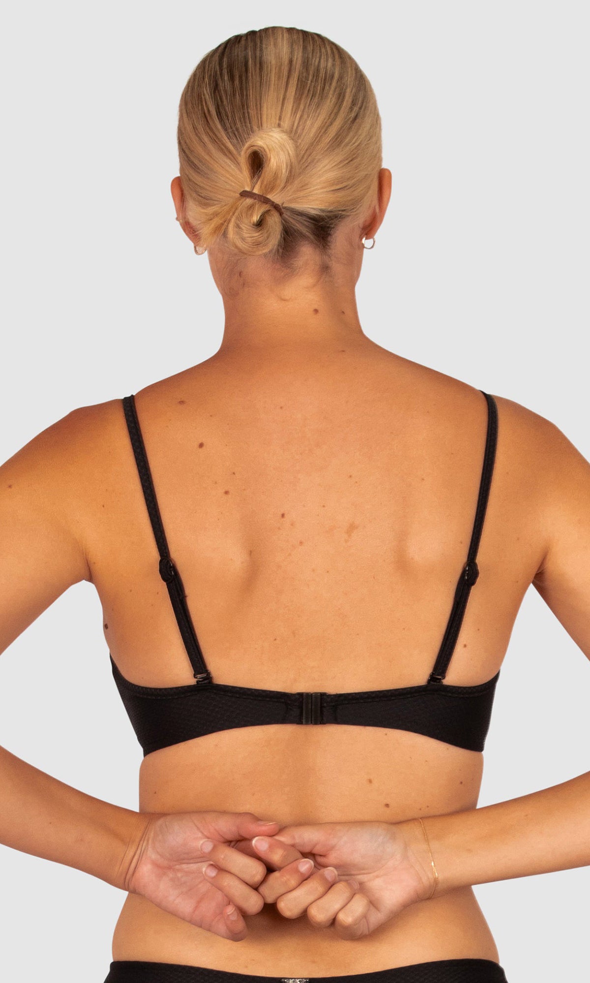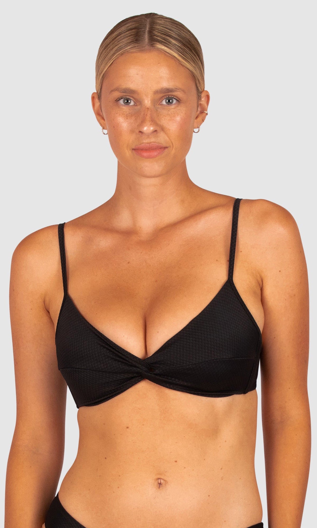 Baku's Rococco Multifit Bralette Bikini Bra, a versatile swimwear essential crafted with thoughtful details for a customisable and stylish beach look. This bralette features removable soft cups and a flattering twist design, complemented by adjustable and convertible straps, all secured with a convenient clip back closure for both comfort and convenience.