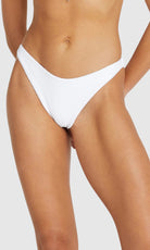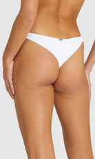 Baku's Rococco Brazilian Retro Bikini Pant features a dipped front waistline with retro slight high leg feature and a cheeky brazilian coverage bottom. Rococco is a luxury textural fabrication from Spain that is buttery soft, yet sophisticated and structured.