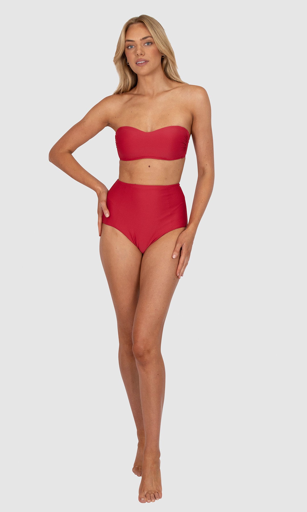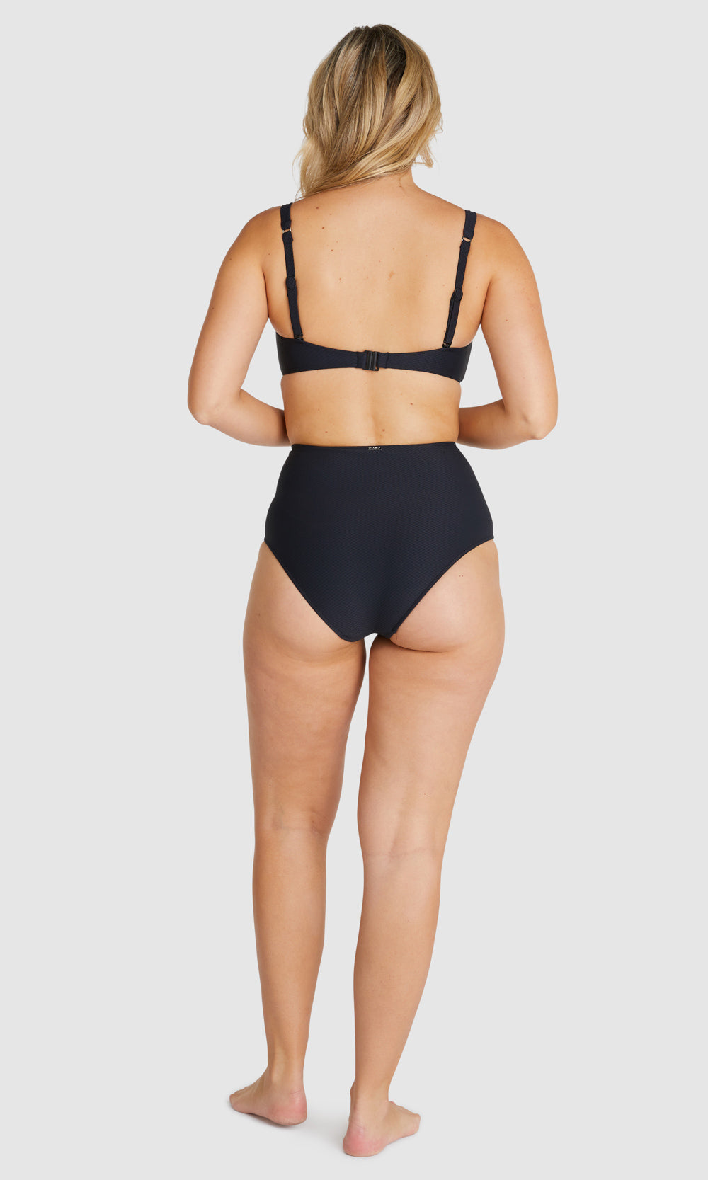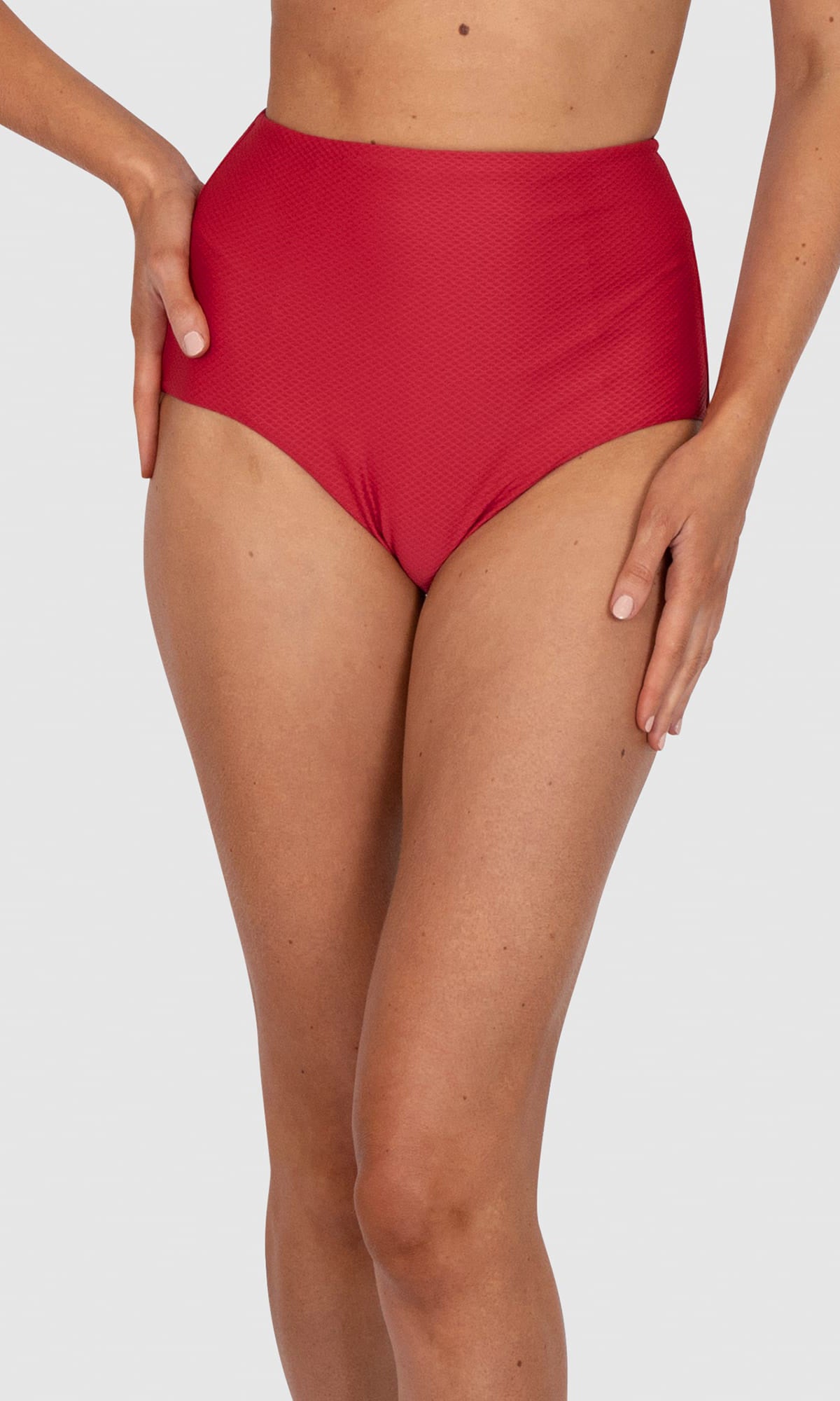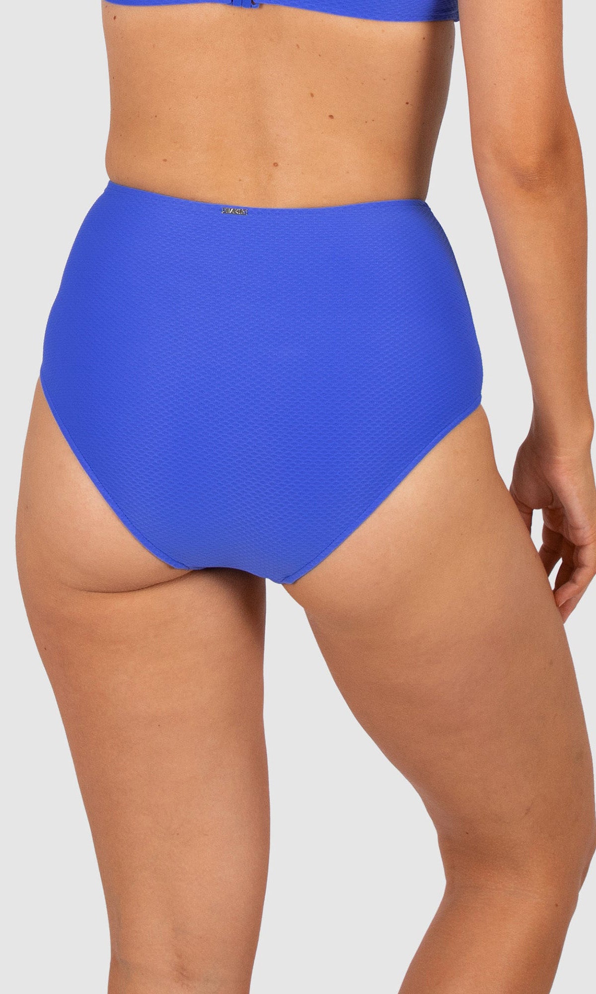 Baku's Rococco Ultra High Waist Bikini Pant features a high waist with a soft edge and tummy control for support. It has a full coverage bottom. Rococco is a luxury textural fabrication from Spain that is buttery soft, yet sophisticated and structured.