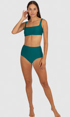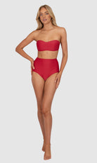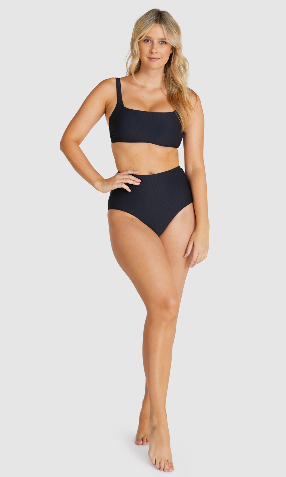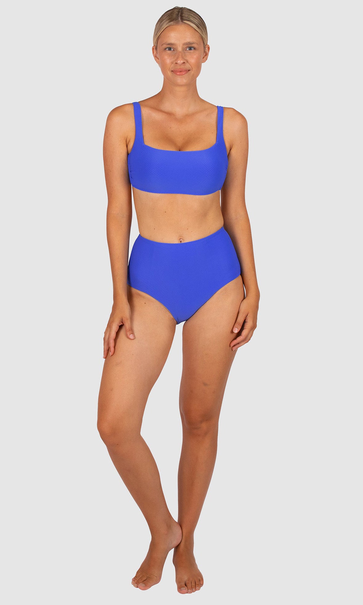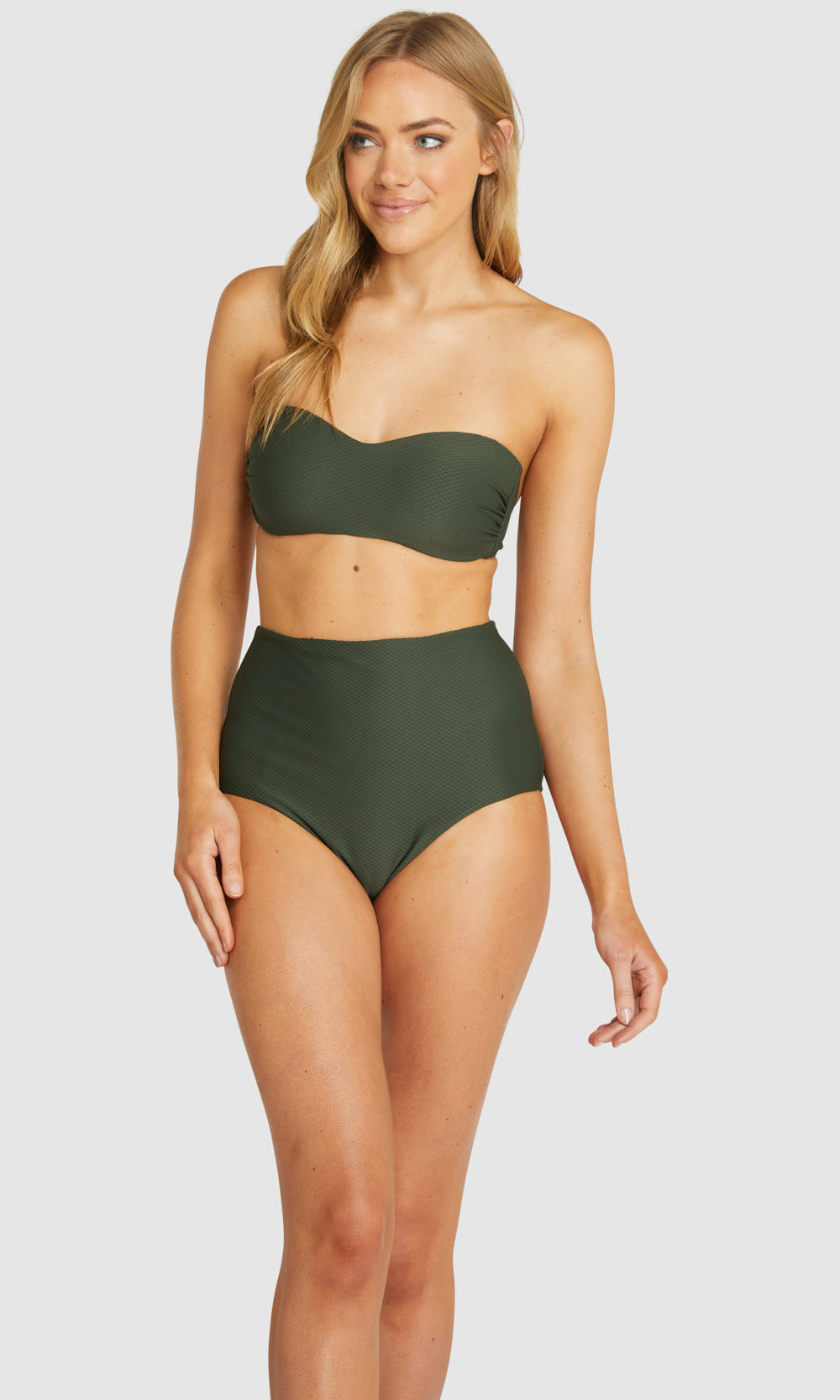 Baku's Rococco Ultra High Waist Bikini Pant features a high waist with a soft edge and tummy control for support. It has a full coverage bottom. Rococco is a luxury textural fabrication from Spain that is buttery soft, yet sophisticated and structured.