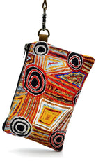 Aboriginal Art Canvas Pouch with Leather Strap by Mary Napangardi Brown