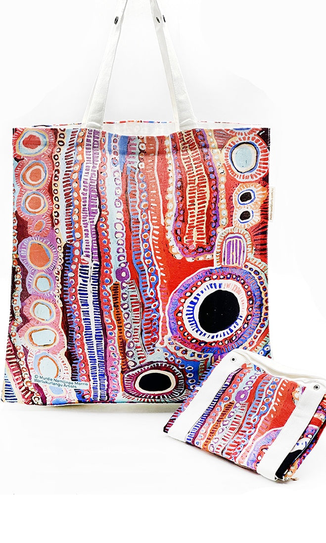 Aboriginal Art Cotton Foldable Shopping Bag by Murdie Nampijinpa MORRIS (2)