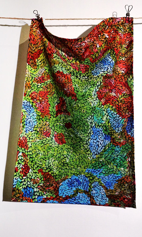 Aboriginal Art Cotton Tea Towel by Patricia Napurrula Multa