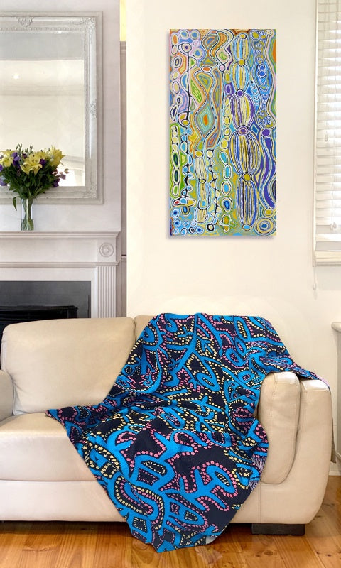 Aboriginal Art Cotton Throw by Theo Hudson