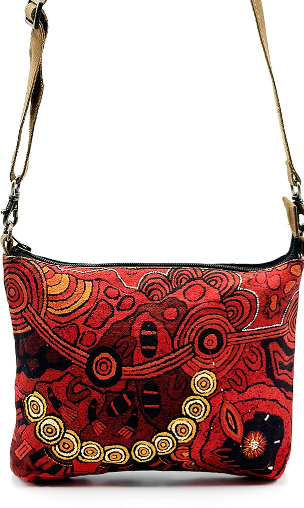 Aboriginal Art Cross Body Bag leather Trimmed by Damien & Yilpi Marks (4)
