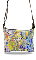 Aboriginal Art Cross Body Bag Leather Trimmed by Judy Watson