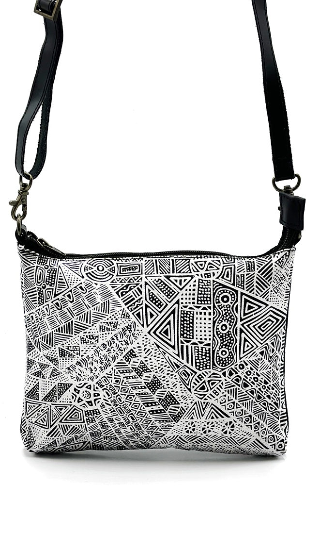 Aboriginal Art Cross Body Bag Leather Trimmed by Simplicia Tipungwuti