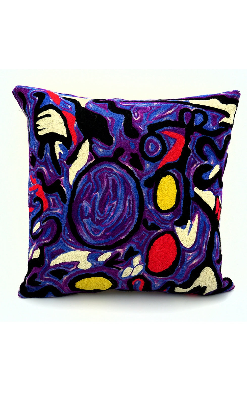 These beautiful, unique textiles are a cross -cultural collaboration combining Aboriginal designs and tradional Kashmiri handicraft. The chain-stitched (Gabba in local Kashmiri) cushions are hand stitched by