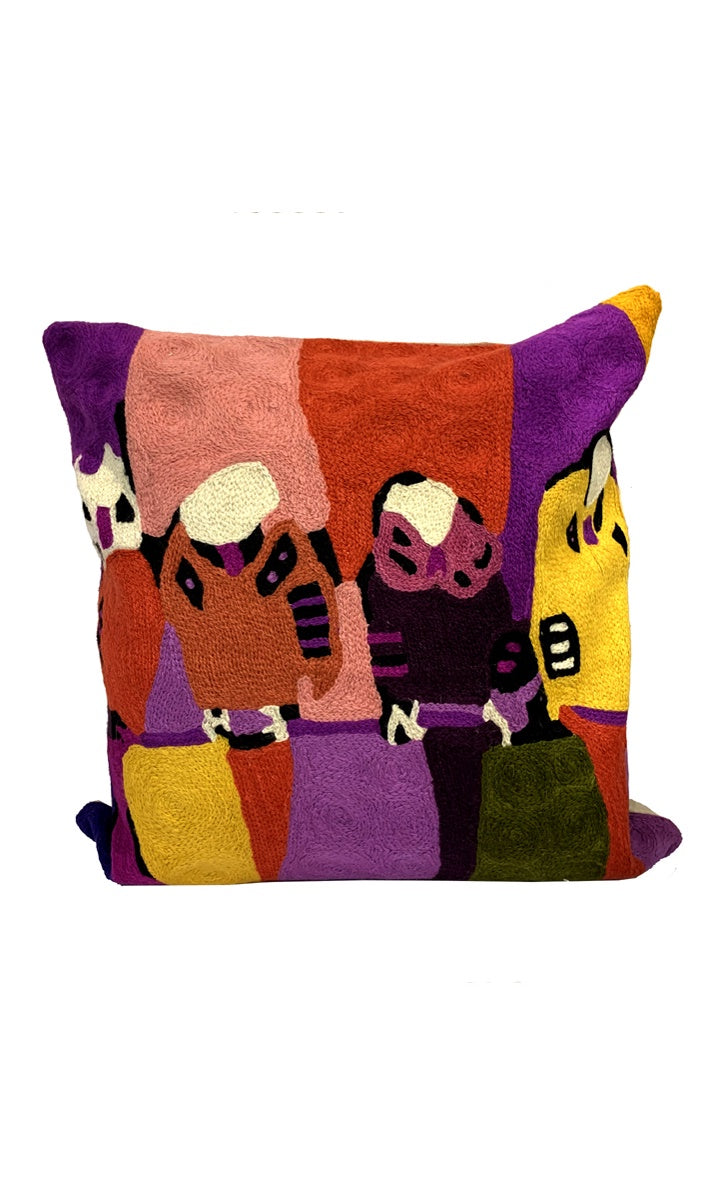 These beautiful, unique textiles are a cross -cultural collaboration combining Aboriginal designs and tradional Kashmiri handicraft. The chain-stitched (Gabba in local Kashmiri) cushions are hand stitched by