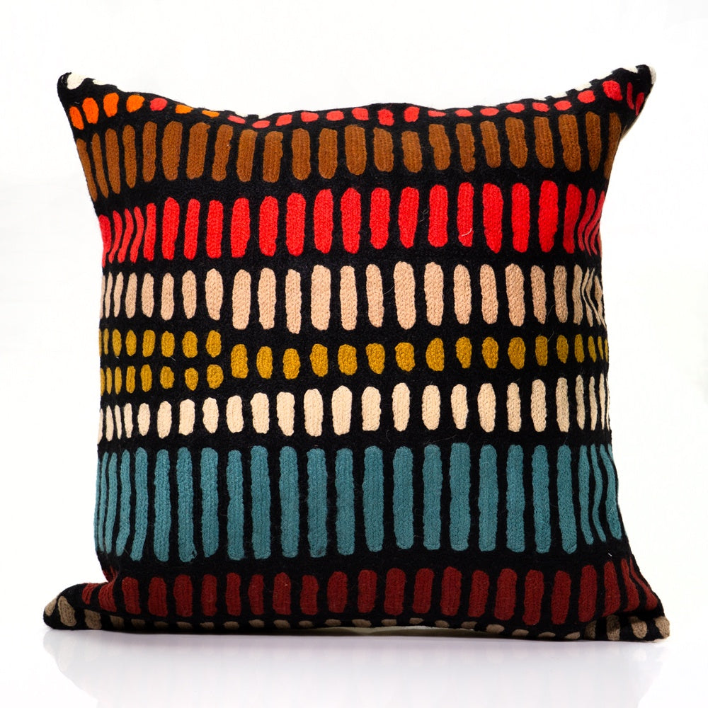 These beautiful, unique textiles are a cross -cultural collaboration combining Aboriginal designs and tradional Kashmiri handicraft. The chain-stitched (Gabba in local Kashmiri) cushions are hand stitched by