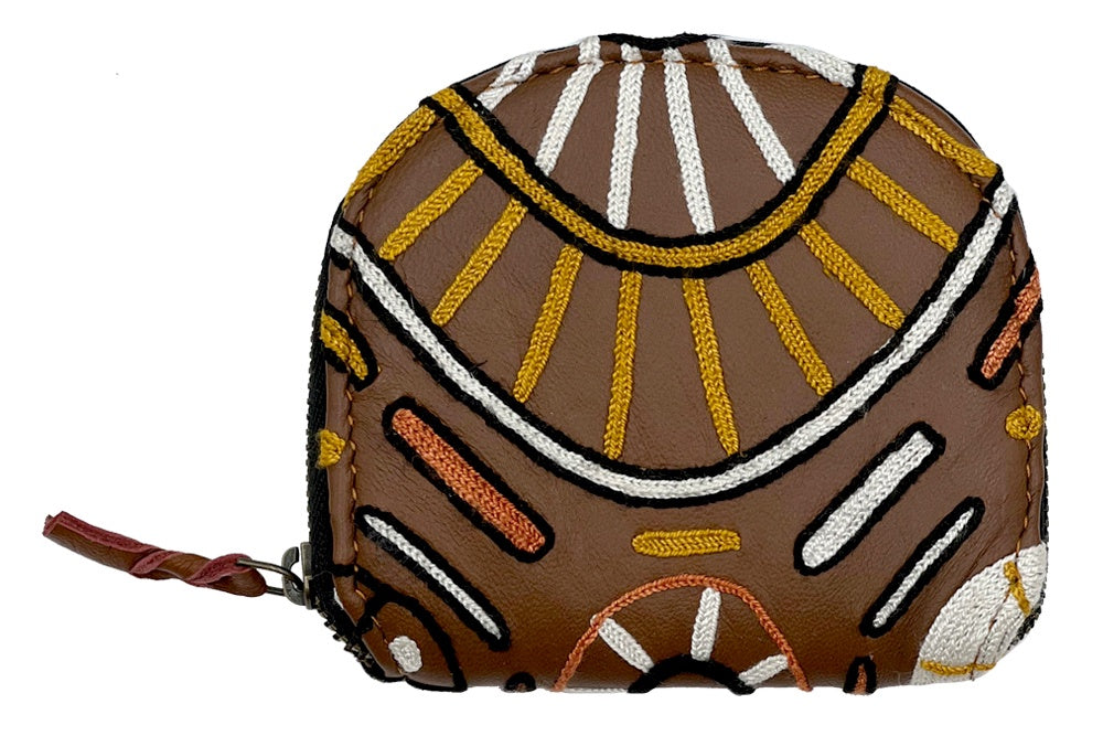 Aboriginal Art Leather Embroidered Coin Purse by Nina Puruntatameri