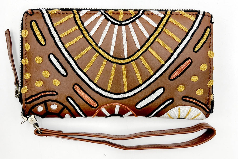 Aboriginal Art Embroidered Leather Purse by Nina Puruntatameri