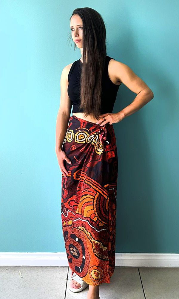 Aboriginal Art Organic Cotton Sarong by Damien and Yilpi Marks
