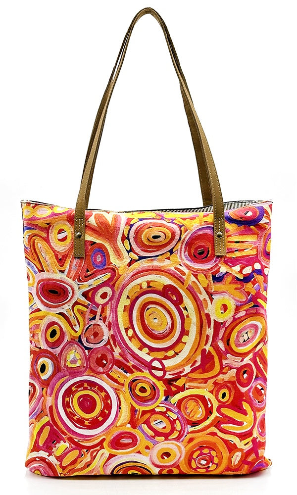 Aboriginal Art Shoulder Tote Bag Leather Trimmed by Cedric Varcoe (3)