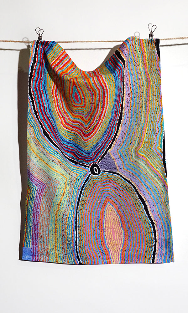 Aboriginal Art Cotton Tea Towel by Liddy Napanangka Walker