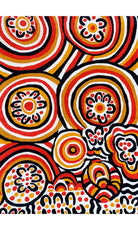 These beautiful, unique rugs are a cross-cultural collaboration combining Aboriginal designs and traditional Kashmiri rug-making techniques. Chain stitched, using hand-dyed wool and finished with a heavy cotton backing, each rug is a completely handmade piece. This project is unusual because the rug is owned by the artists, rather than licensed to a third party. A more empowering way to work, this brings many direct benefits to the artists’ and their community. Control and ownership of intellectual property are also maintained. Purchase of these rugs guarantees a direct return to the Aboriginal artist and their community.