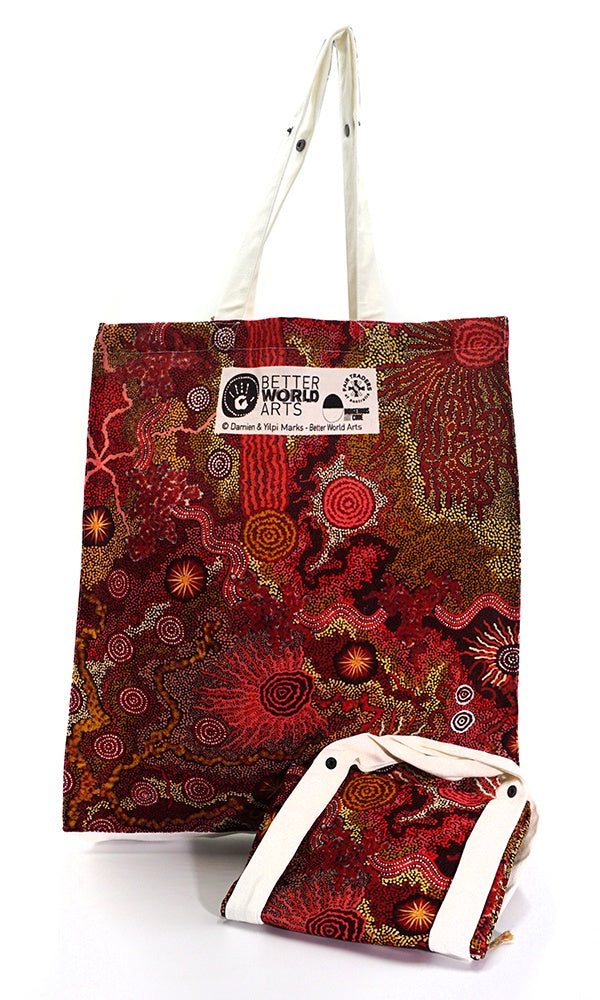 Aboriginal Art Cotton Foldable Shopping Bag by Damien and Yilpi Marks (2)