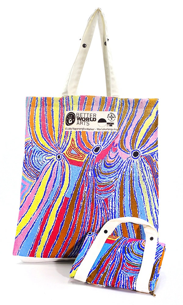Aboriginal Art Cotton Foldable Shopping Bag by Liddy Napanangka Walker