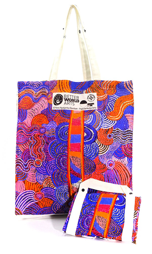 Aboriginal Art Cotton Foldable Shopping Bag by Nora Nyutjanka Davidson