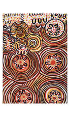 Our printing is a hand process that traditional handicraft workers can adopt, already having a similar skills set. Handicrafts in general are struggling to survive, pushed aside by industrial mass production. People are being displaced from their home villages due to lack of income. Screen printing is both productive and a clean industry that can be practiced on a small scale. We use water based inks. The designs belong to Aboriginal artists, who receive generous royalties on every purchase made.