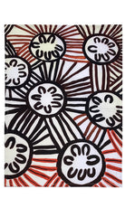 Our printing is a hand process that traditional handicraft workers can adopt, already having a similar skills set. Handicrafts in general are struggling to survive, pushed aside by industrial mass production. People are being displaced from their home villages due to lack of income. Screen printing is both productive and a clean industry that can be practiced on a small scale. We use water based inks. The designs belong to Aboriginal artists, who receive generous royalties on every purchase made.